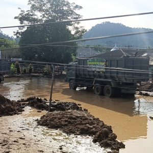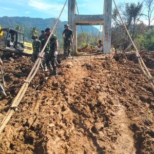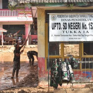 Tapanuli Selatan – Satgas Penanggulangan Bencana Alam (Gulbencal) Kodam I/Bukit Barisan membersihkan