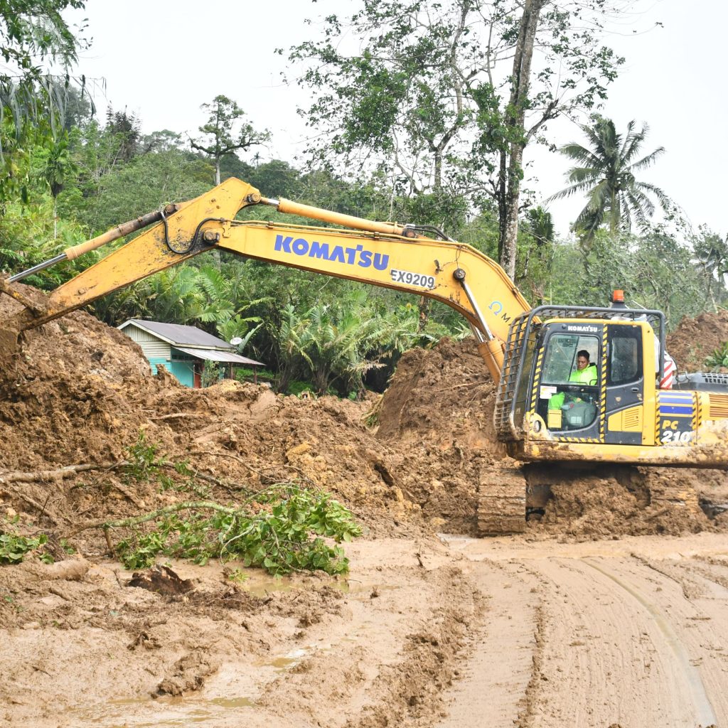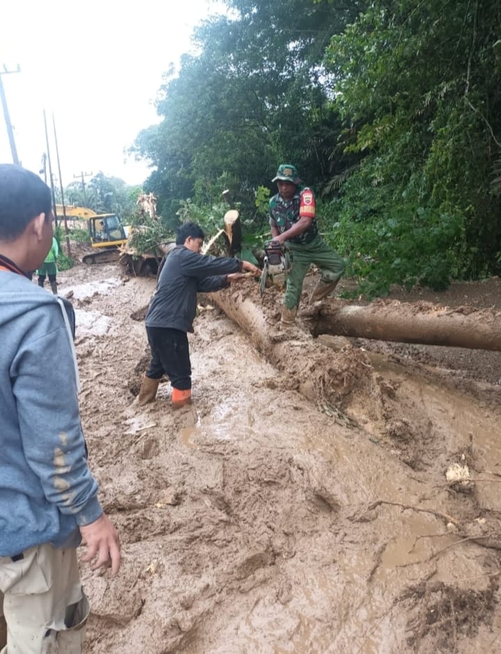Longsor terjadi akibat curah hujan tinggi yang mengguyur wilayah tersebut sejak malam sebelumnya. Material lumpur tebal serta batang pohon besar memenuhi badan jalan dan mengakibatkan kendaraan tidak dapat melintas. Aparat gabungan langsung melakukan penanganan dengan memotong batang pohon dan mengeruk lumpur menggunakan alat berat maupun peralatan manual agar jalan dapat dibuka kembali.