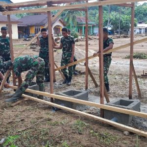 Tapanuli Tengah – Satgas Gulbencal Kodam I/BB melaksanakan pembangunan fasilitas mandi, cuci,
