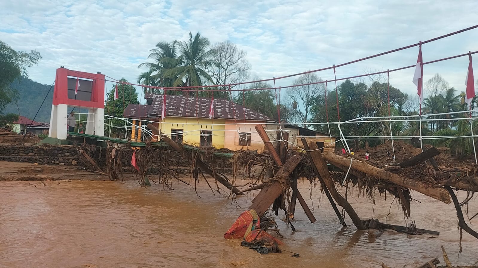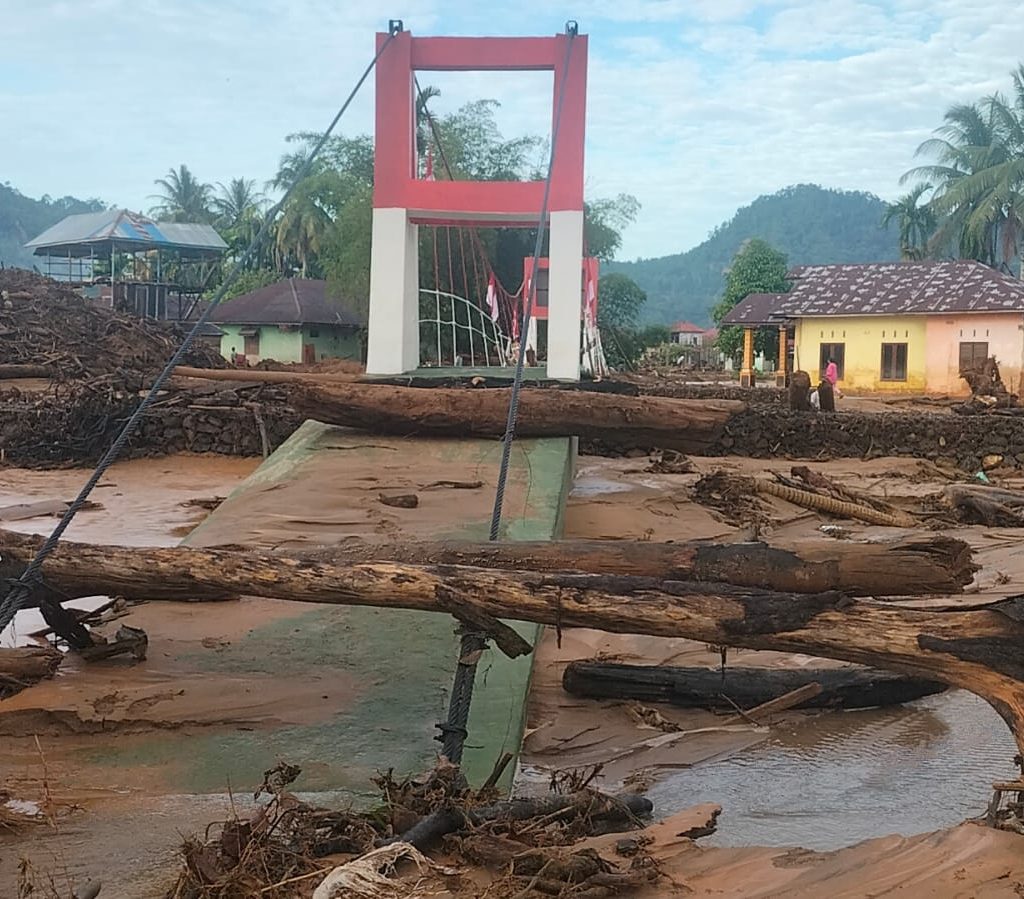 Tapanuli Tengah — Akibat curah hujan yang tinggi, Jembatan Gantung Perintis Garuda mengalami kerusakan sedang namun tidak sampai terputus di Kelurahan Tukka, Kecamatan Tukka, Kabupaten Tapanuli Tengah, Kamis (12/2/2026).