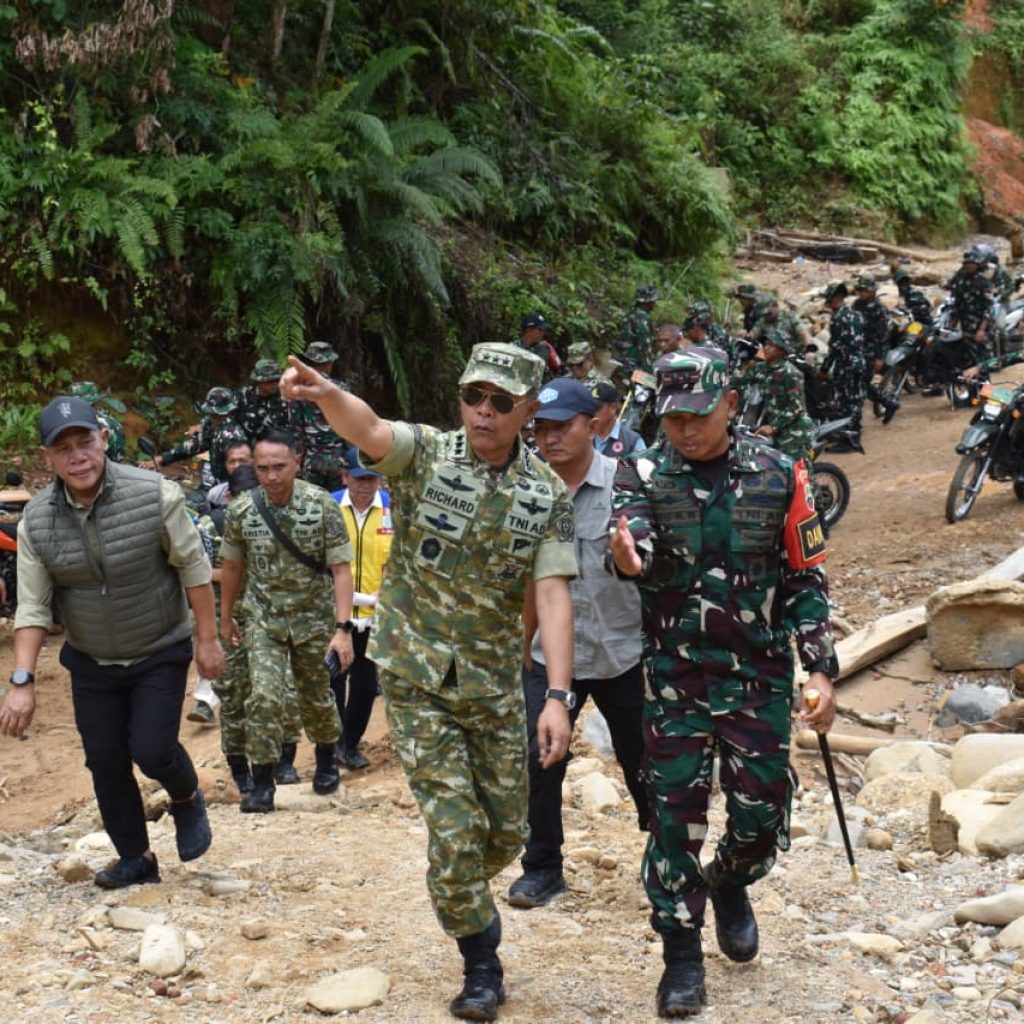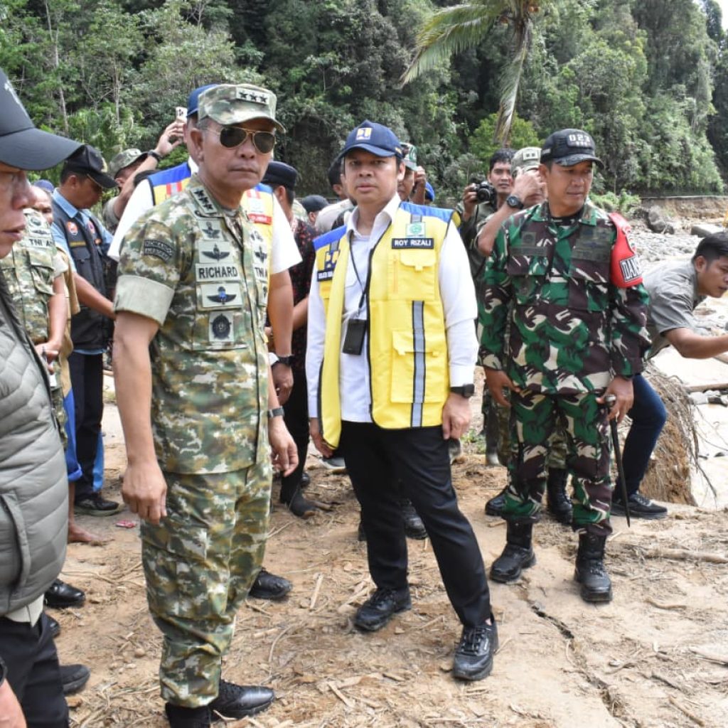 Kasum TNI beserta rombongan meninjau jembatan yang putus di Desa Lubuk Ampolu, Kecamatan Badiri, serta Hunian Sementara (Huntara) dan pembangunan Hunian Tetap (Huntap) di Asrama Haji Pinangsori. Kunjungan ini dilakukan untuk memastikan kondisi pengungsi, progres pembangunan Huntara/Huntap, serta pemulihan infrastruktur dan jembatan berjalan sesuai kebutuhan masyarakat terdampak.