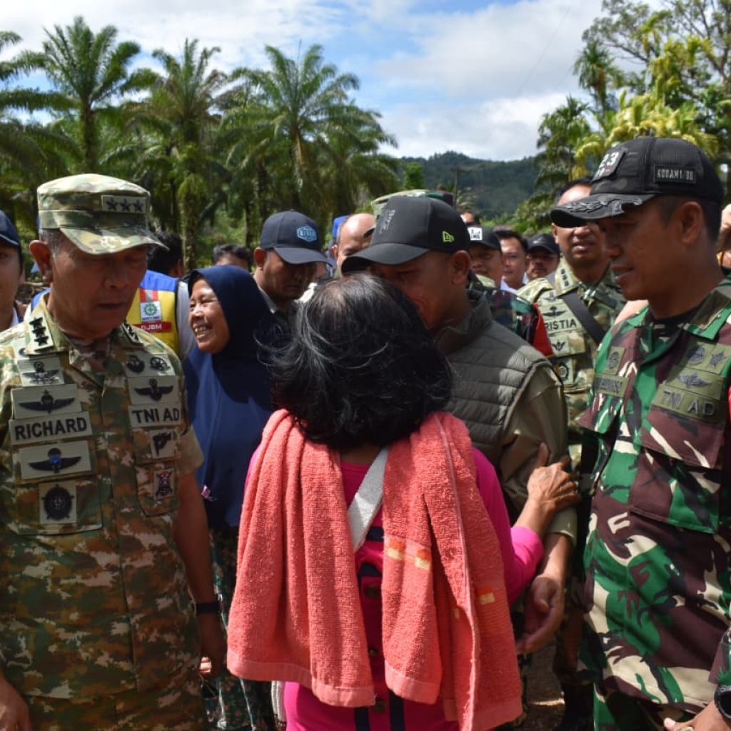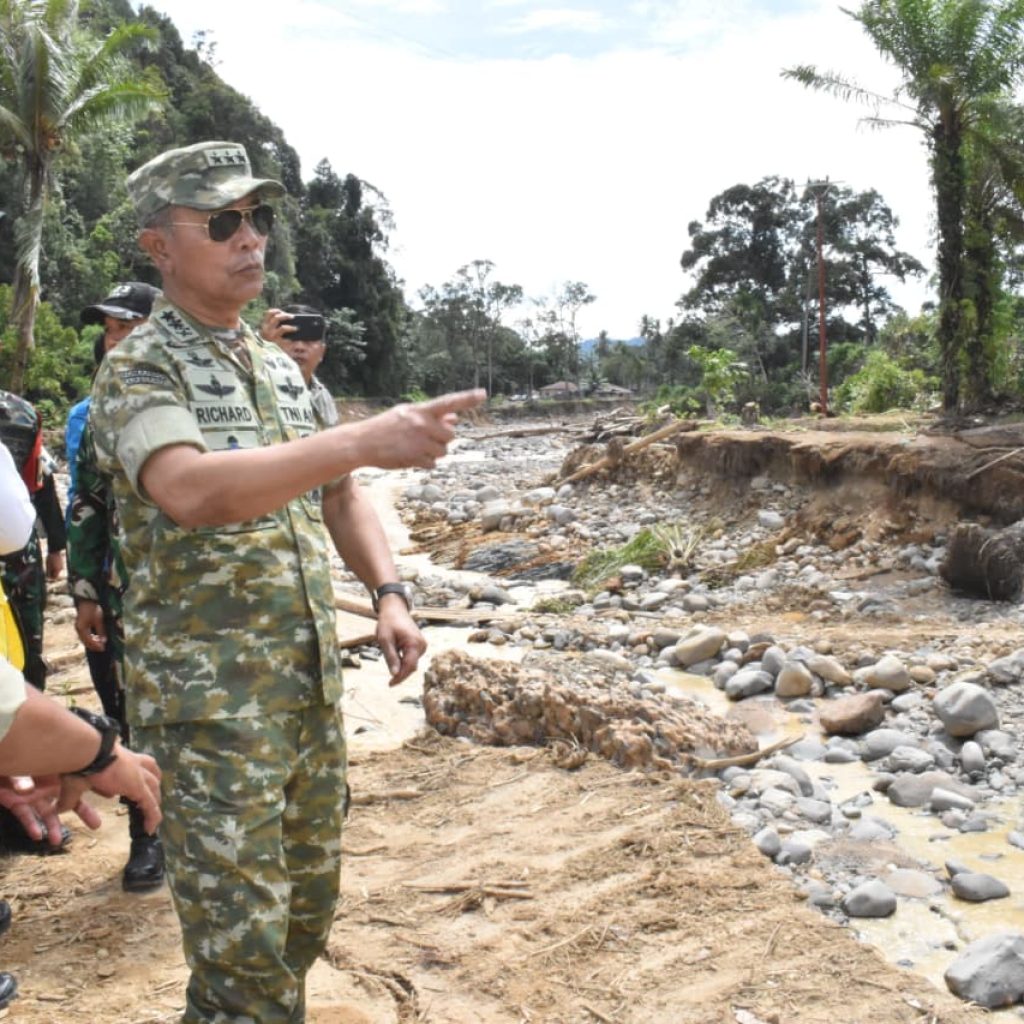 Kedatangan Kasum TNI menggunakan helikopter Caracal TNI AU dari Bandara Silangit dan disambut unsur TNI, Polri, serta pemerintah daerah di Bandara Dr. FL Tobing, Pinangsori. Rombongan kemudian bergerak meninjau Kelurahan Hutanabolon, Kecamatan Tukka, untuk melihat lokasi terdampak banjir serta menerima paparan teknis terkait normalisasi Daerah Aliran Sungai (DAS), pembangunan sabodam, dan penguatan tanggul sebagai langkah mitigasi banjir.