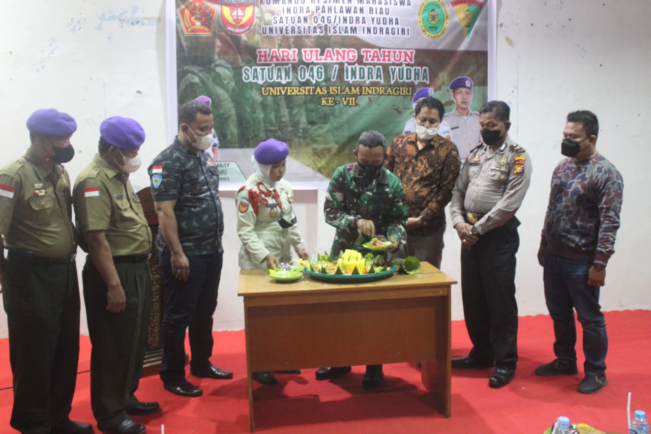 “Selamat ulang tahun yang ke tujuh Resimen Mahasiswa Satuan 046/Indra Yudha Universitas Islam Indragiri,” ucap Dandim.