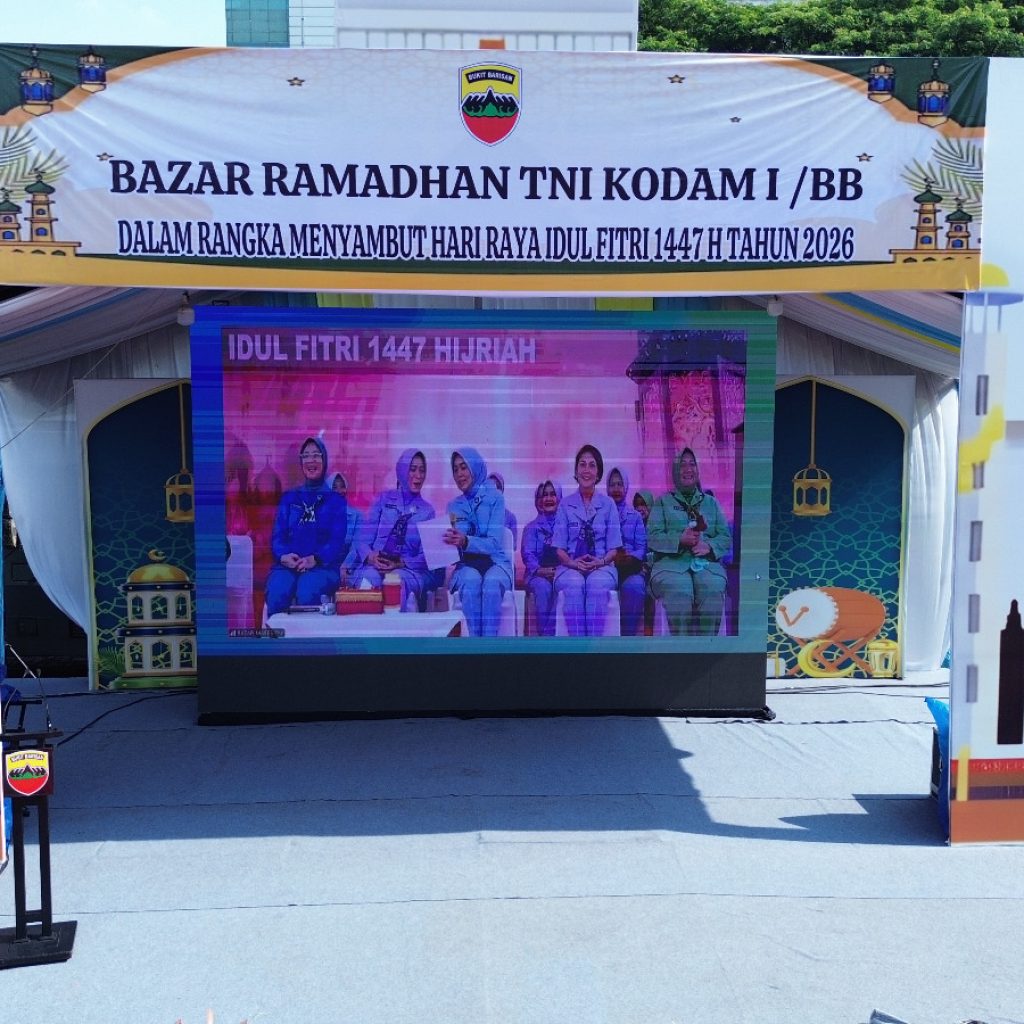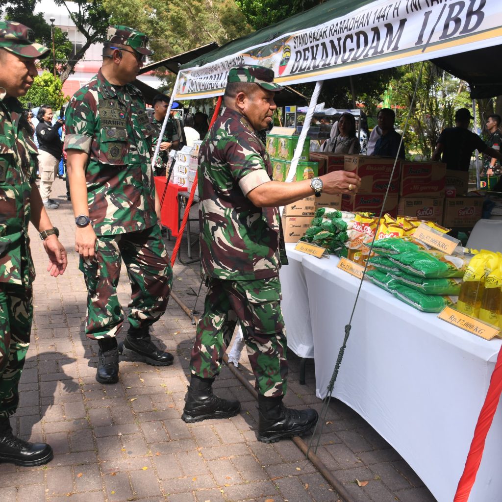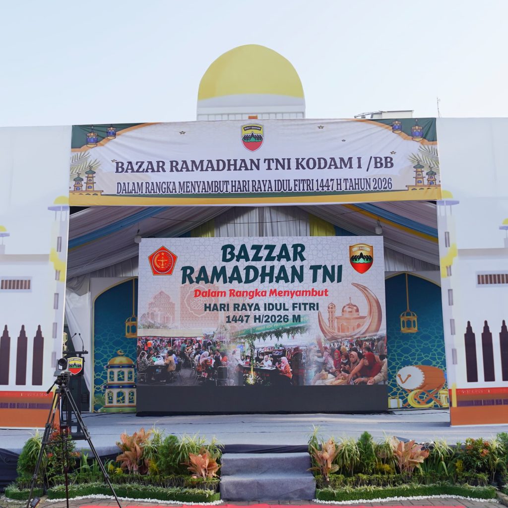 Medan — Inspektur Kodam I/Bukit Barisan, Brigjen TNI Josafath M. Robert Duka, menghadiri kegiatan pembukaan Bazar Ramadan TNI Terpusat Tahun 2026 dalam rangka menyambut Hari Raya Idul Fitri 1447 Hijriah yang dilaksanakan secara serentak melalui video conference. Kegiatan di wilayah Kodam I/Bukit Barisan dipusatkan di Lapangan Benteng yang berlokasi di Jalan Pengadilan, Kelurahan Petisah Tengah, Kecamatan Medan Petisah, Kota Medan, Jumat (13/3/2026).