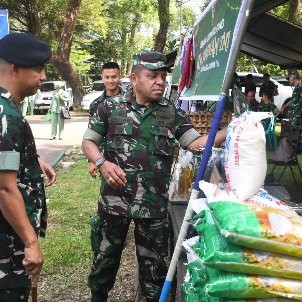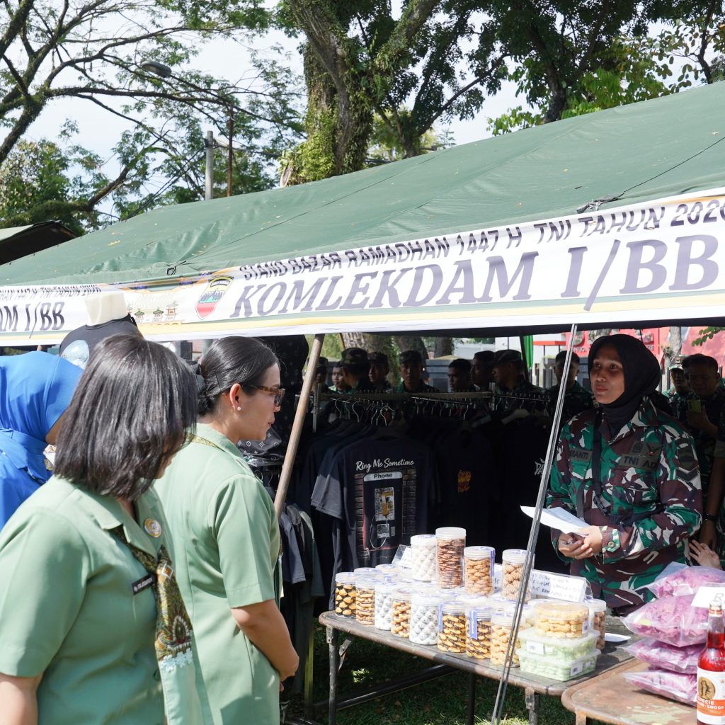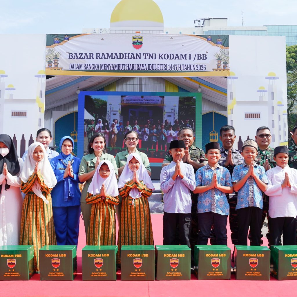 Medan — Inspektur Kodam I/Bukit Barisan, Brigjen TNI Josafath M. Robert Duka, menghadiri kegiatan pembukaan Bazar Ramadan TNI Terpusat Tahun 2026 dalam rangka menyambut Hari Raya Idul Fitri 1447 Hijriah yang dilaksanakan secara serentak melalui video conference. Kegiatan di wilayah Kodam I/Bukit Barisan dipusatkan di Lapangan Benteng yang berlokasi di Jalan Pengadilan, Kelurahan Petisah Tengah, Kecamatan Medan Petisah, Kota Medan, Jumat (13/3/2026).