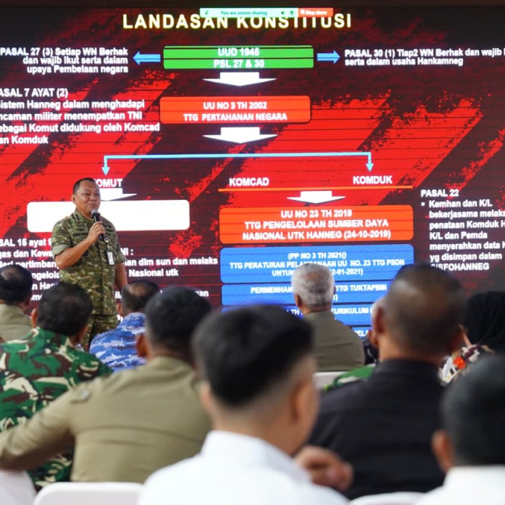 MEDAN – Irdam I/Bukit Barisan Brigjen TNI Josafath M. Robert Duka menghadiri kegiatan sosialisasi Kementerian Pertahanan RI melalui Badan Cadangan Nasional (Bacadnas) tentang Pengelolaan Sumber Daya Nasional untuk Pertahanan Negara, bertempat di Gedung AH Nasution Lt. II Makodam I/BB, Selasa (7/4/2026).