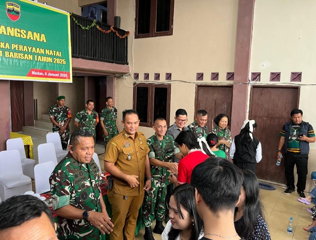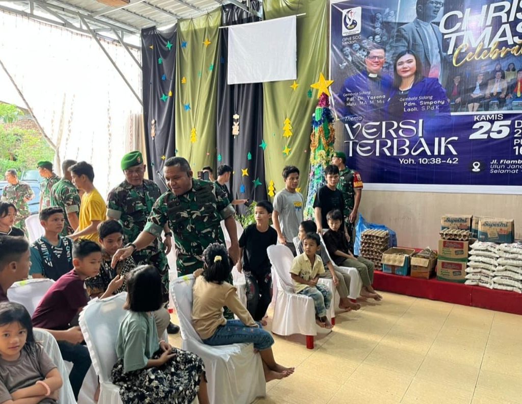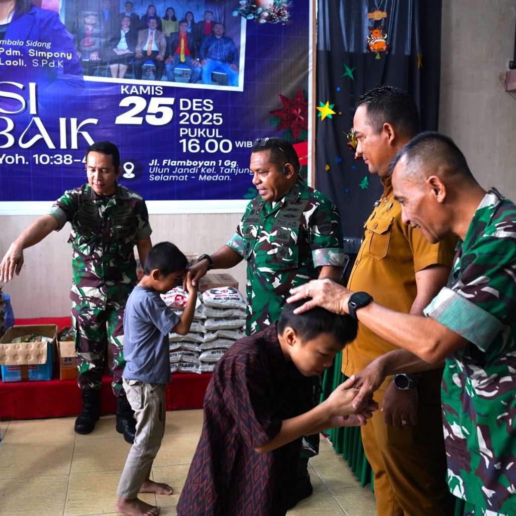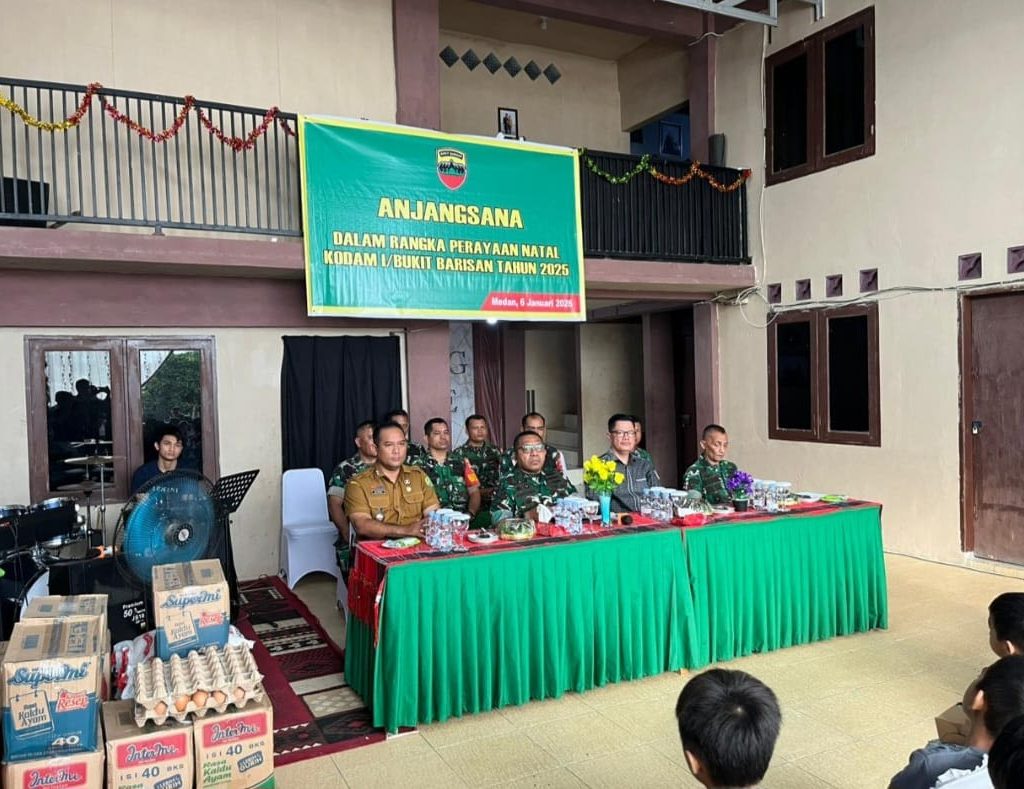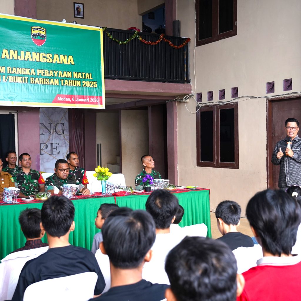 Medan – Inspektur Daerah Militer (Irdam) I/Bukit Barisan Brigjen TNI Josafath M. Robert Duka, S.I.P., memimpin kegiatan anjangsana dalam rangka Perayaan Natal Kodam I/Bukit Barisan Tahun Anggaran 2025 di Panti Asuhan Sukacita Anak Mahkota (Panti Asuhan Kristen Protestan), Jalan Flamboyan I Gang Ulun, Kelurahan Tanjung Selamat, Kecamatan Medan Tuntungan, Kota Medan, Selasa (6/1/2026).