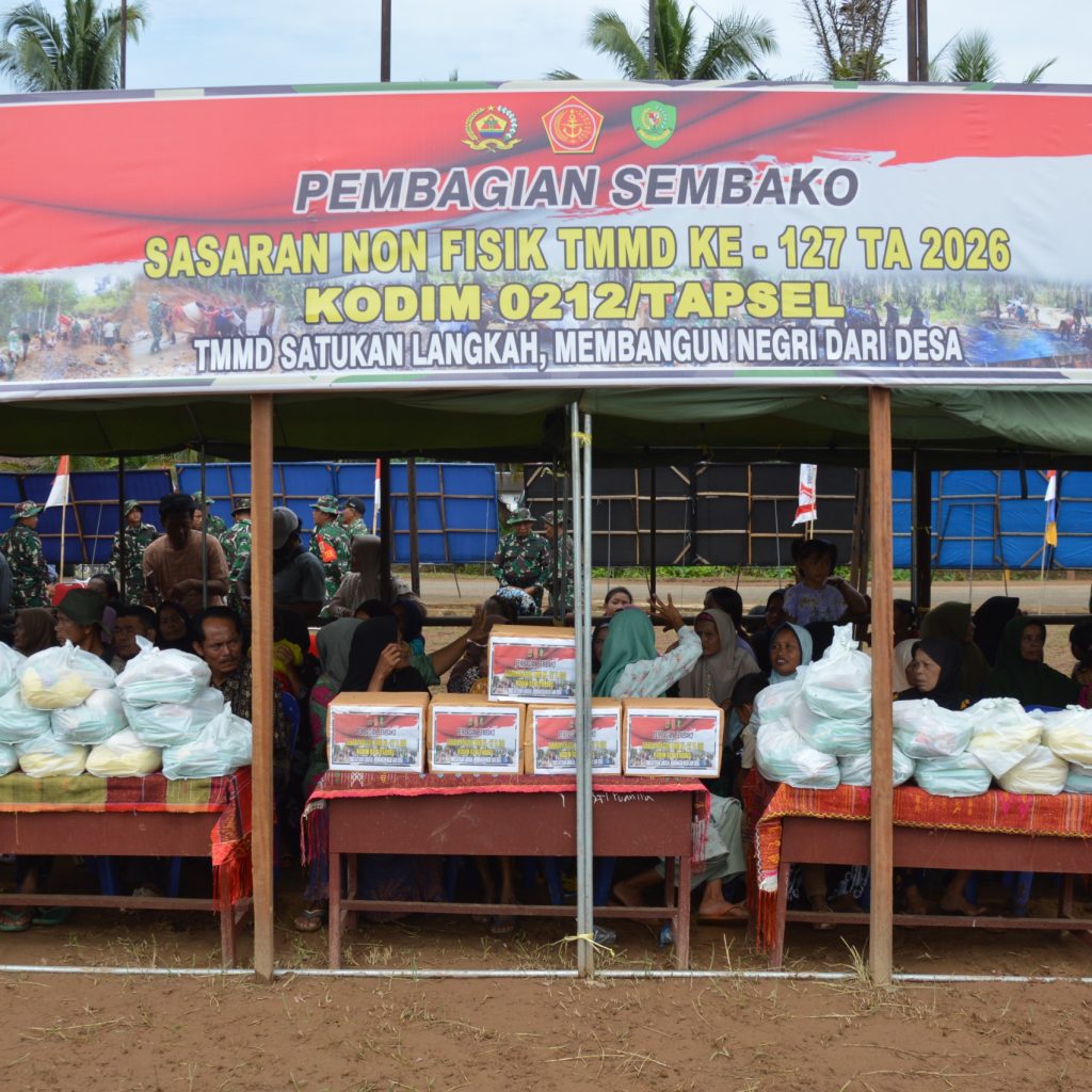 Tapanuli Selatan – Inspektur Kodam I/Bukit Barisan (Irdam I/BB) Brigadir Jenderal TNI Josafath M. Robert Duka, S.I.P. memimpin upacara penutupan program TNI Manunggal Membangun Desa (TMMD) ke-127 Tahun Anggaran 2026 yang dilaksanakan oleh Kodim 0212/Tapanuli Selatan. Kegiatan berlangsung di Lapangan Sepak Bola Desa Sangkunur, Kecamatan Angkola Sangkunur, Kabupaten Tapanuli Selatan, Rabu (11/3/2026).