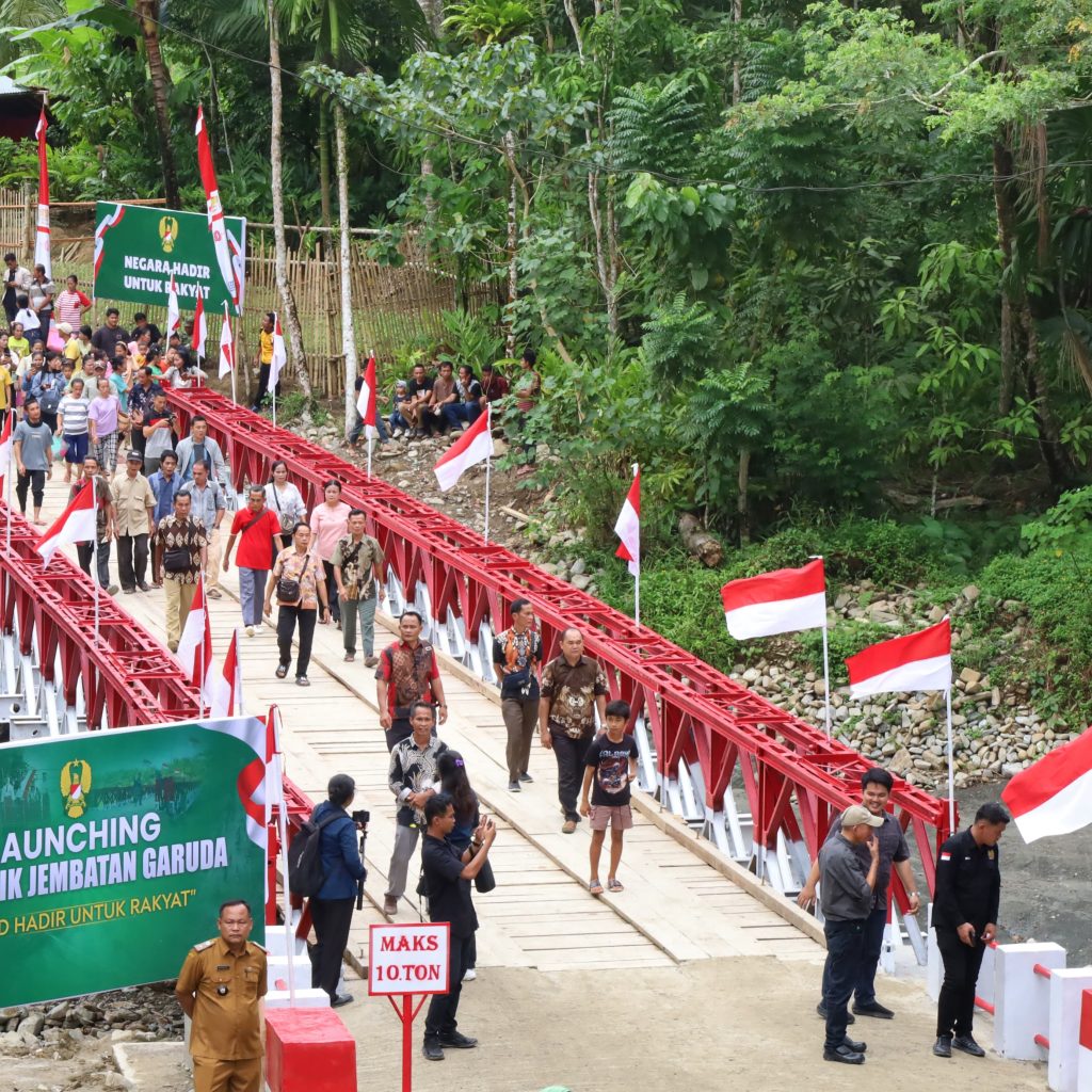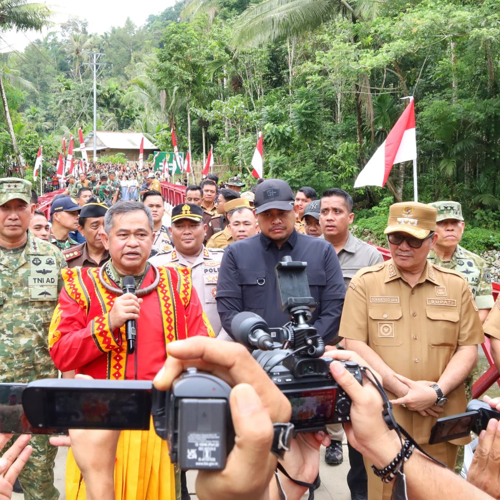Setibanya di lokasi, Kasad dan rombongan kembali disambut masyarakat dengan tarian adat. Bupati Nias Selatan kemudian memberikan pakaian adat lengkap beserta mahkota kepada Kasad dan Ketua Umum Persit sebagai bentuk penghormatan dan ungkapan terima kasih atas pembangunan jembatan tersebut. Kegiatan dilanjutkan dengan paparan dari Dirfasjas Pusziad mengenai pembangunan jembatan sebelum dilakukan peresmian dan peninjauan.