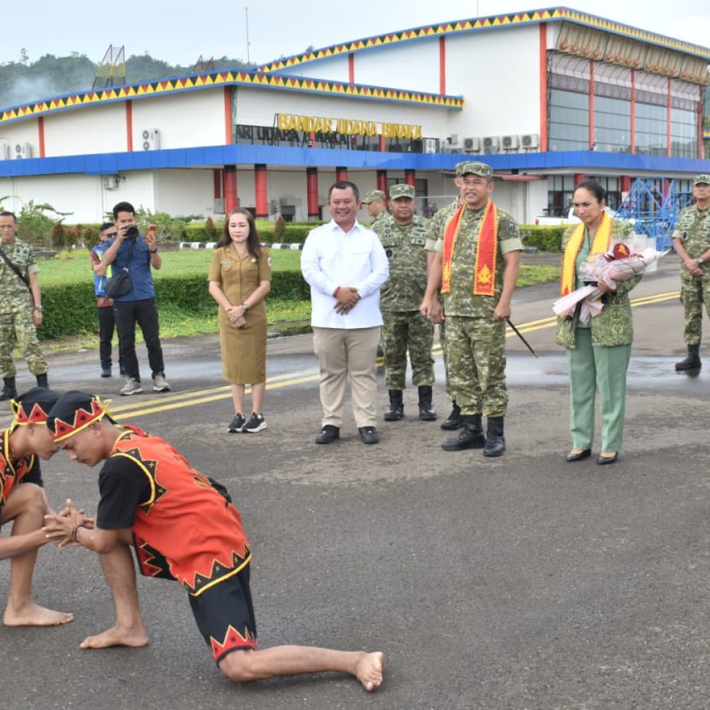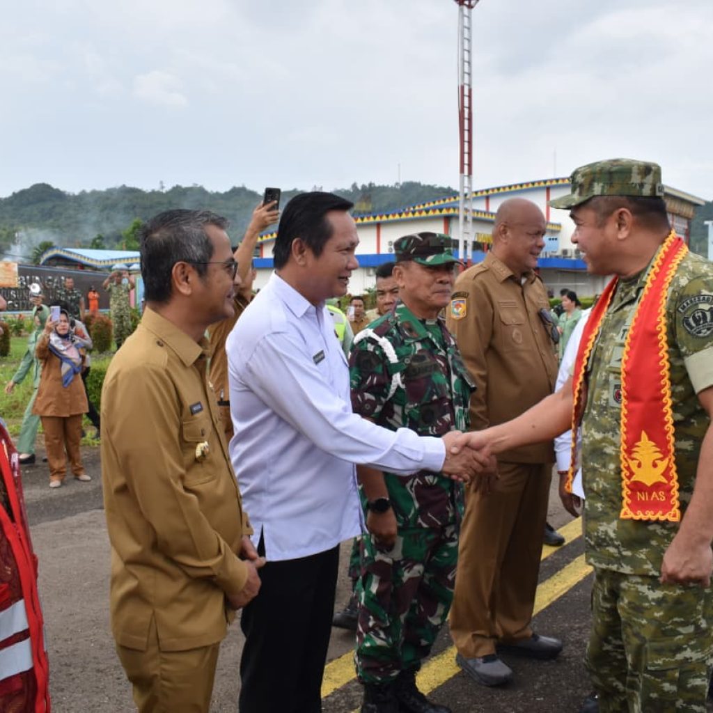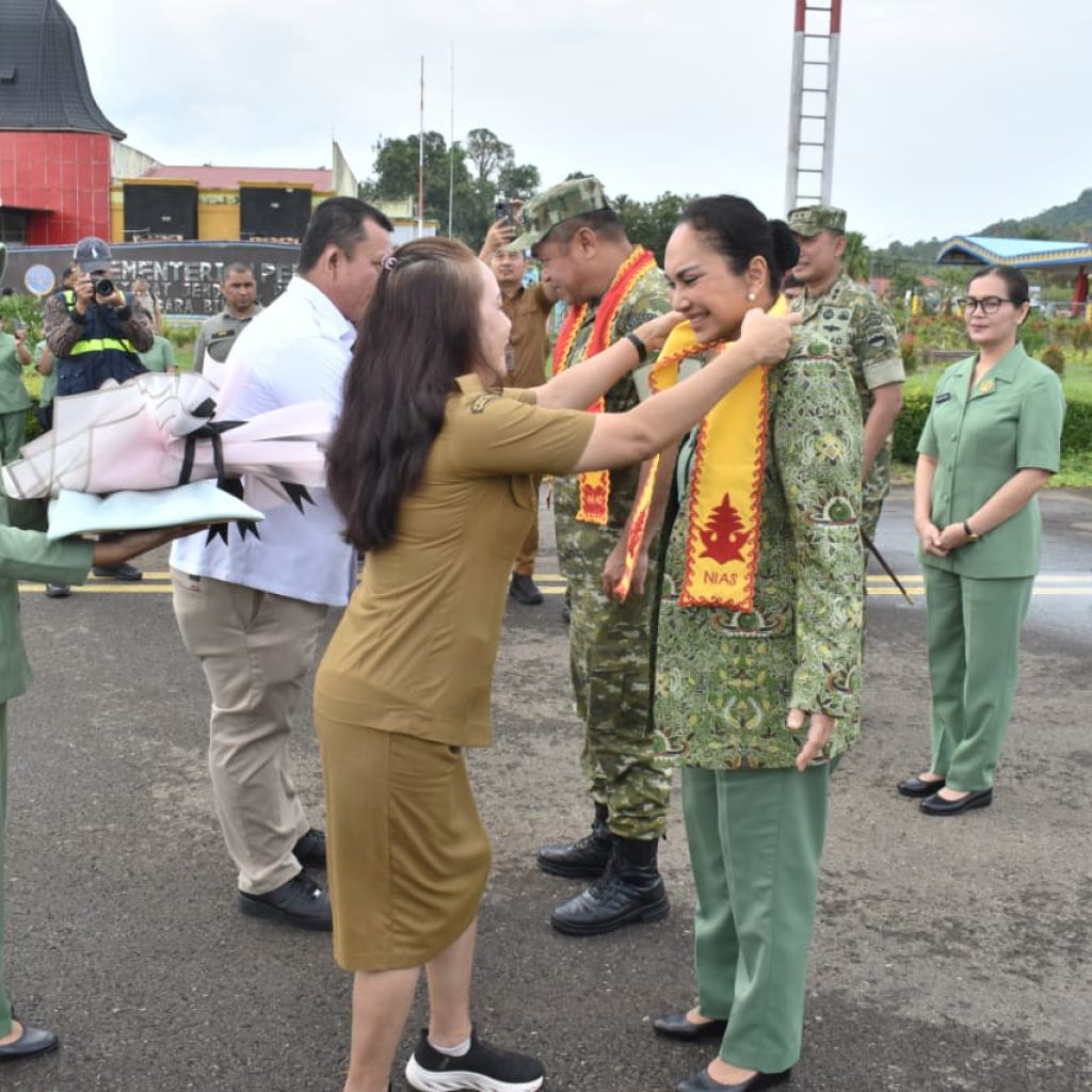 Kedatangan Kasad dan rombongan di Bandara Binaka, Gunungsitoli, disambut secara adat oleh pemerintah daerah dan masyarakat. Prosesi penyambutan diawali dengan tarian sekapur sirih, dilanjutkan pemberian kain adat berupa selempang serta buket kain batik Nias kepada Kasad dan Ketua Umum Persit oleh Wali Kota Gunungsitoli bersama para bupati se-Kepulauan Nias.