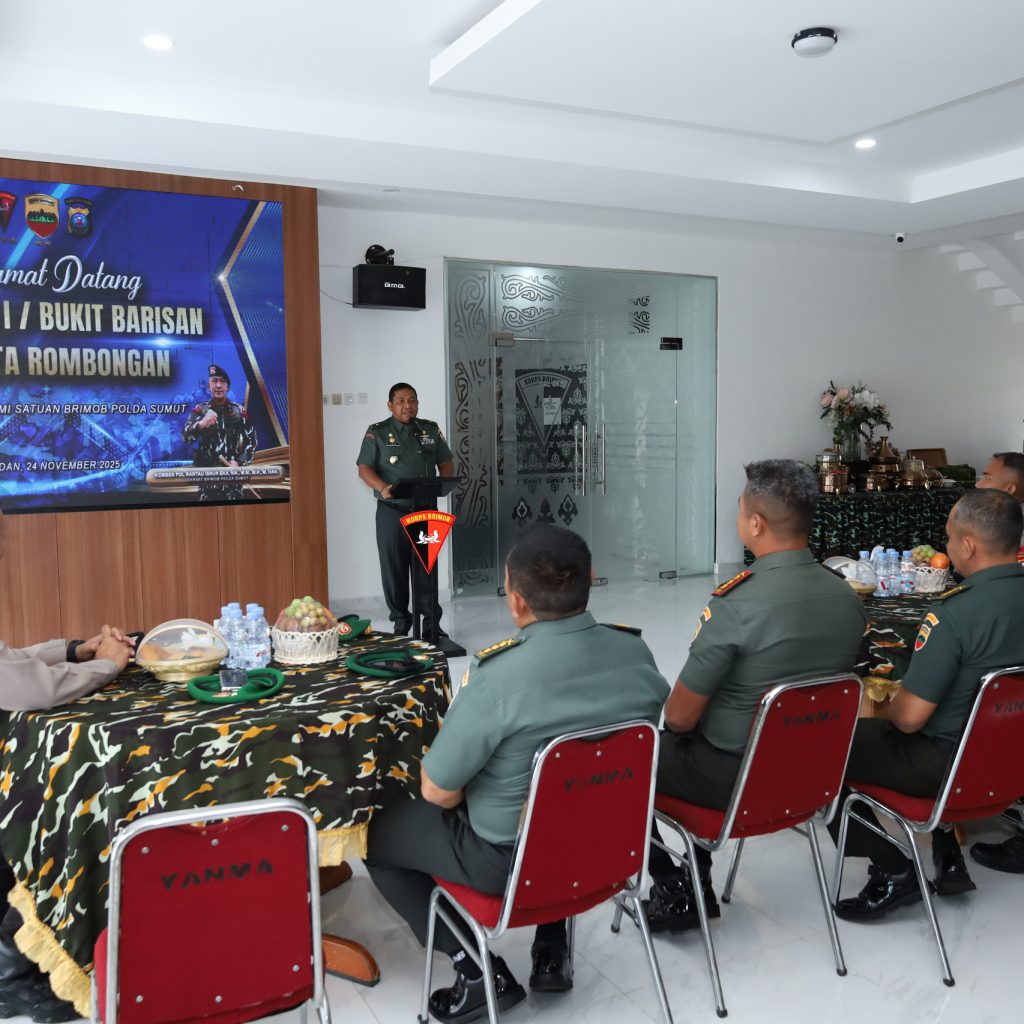 Medan – Kasdam I/Bukit Barisan Brigjen TNI Deki Santoso Pattinaya melakukan rangkaian kunjungan ke tiga satuan di Kota Medan, yakni Batalyon Komando (Yon) 469 Kopasgat, Satuan Brimob Polda Sumut, serta Batalyon Marinir Pertahanan Pangkalan (Yonmarhanlan) I Belawan, Senin (24/11/2025). Kegiatan ini dilakukan mewakili Pangdam I/BB Mayjen TNI Rio Firdianto yang tengah mendampingi Panglima TNI dalam agenda kedinasan.