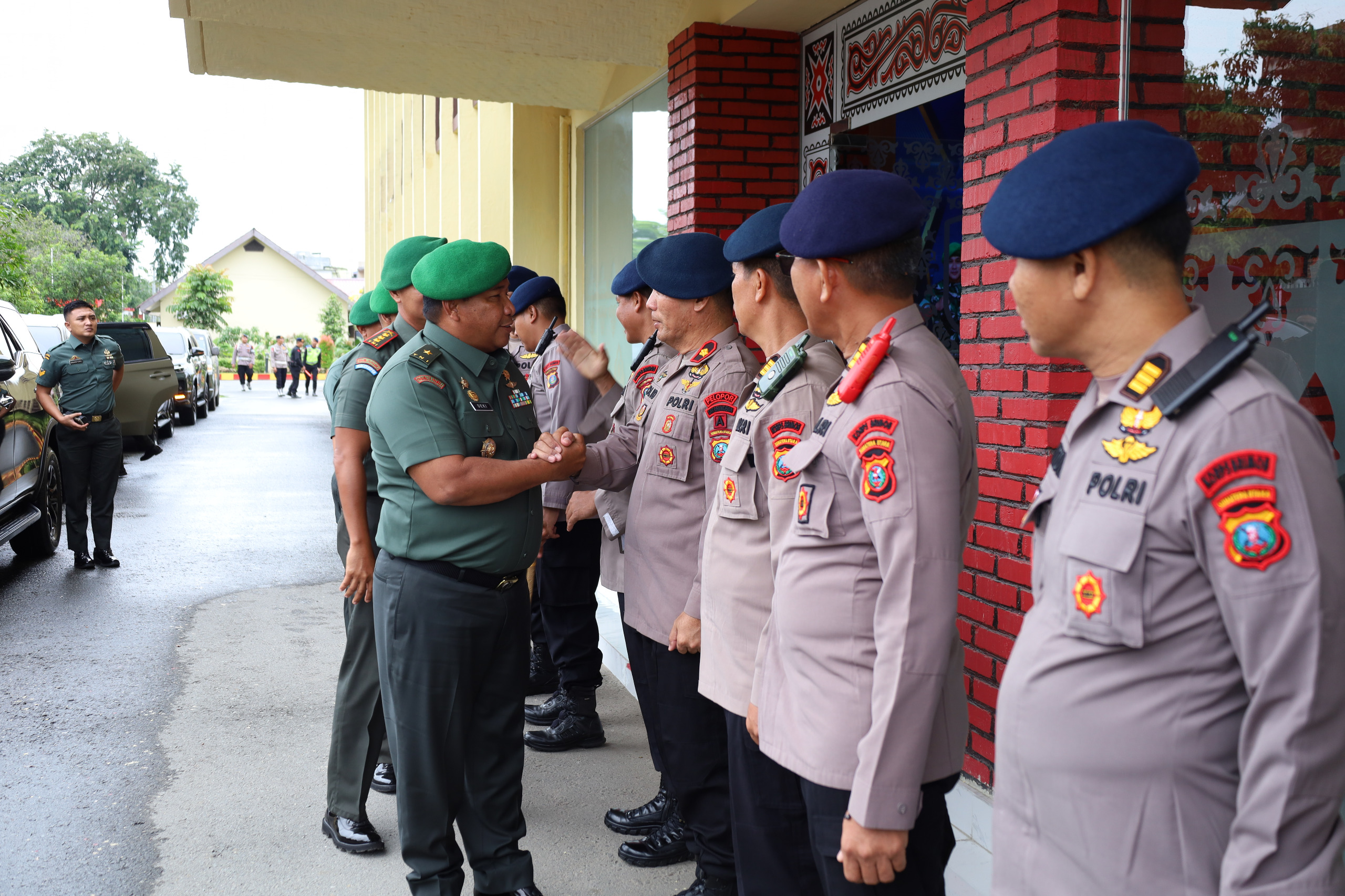 Rangkaian kegiatan berlanjut ke Markas Satuan Brimob Polda Sumut di Medan Tembung. Kasdam diterima Danden Gegana AKBP Octorolas Simbolon yang menyampaikan terima kasih atas dukungan Kodam I/BB serta komitmen untuk terus memperkuat sinergi TNI–Polri dalam menjaga stabilitas keamanan wilayah. Pada kesempatan ini, Kasdam kembali menyerahkan tali asih dari Pangdam I/BB berupa perlengkapan olahraga dan fasilitas pendukung satuan.