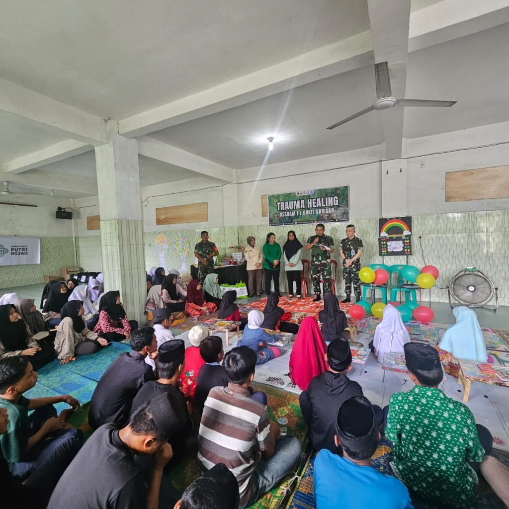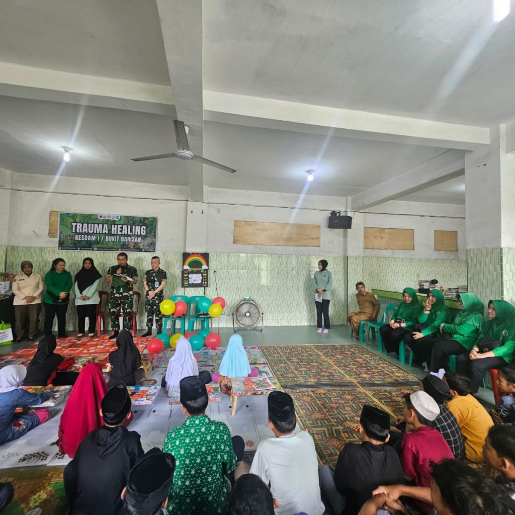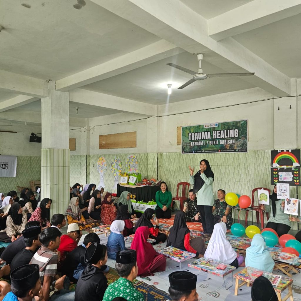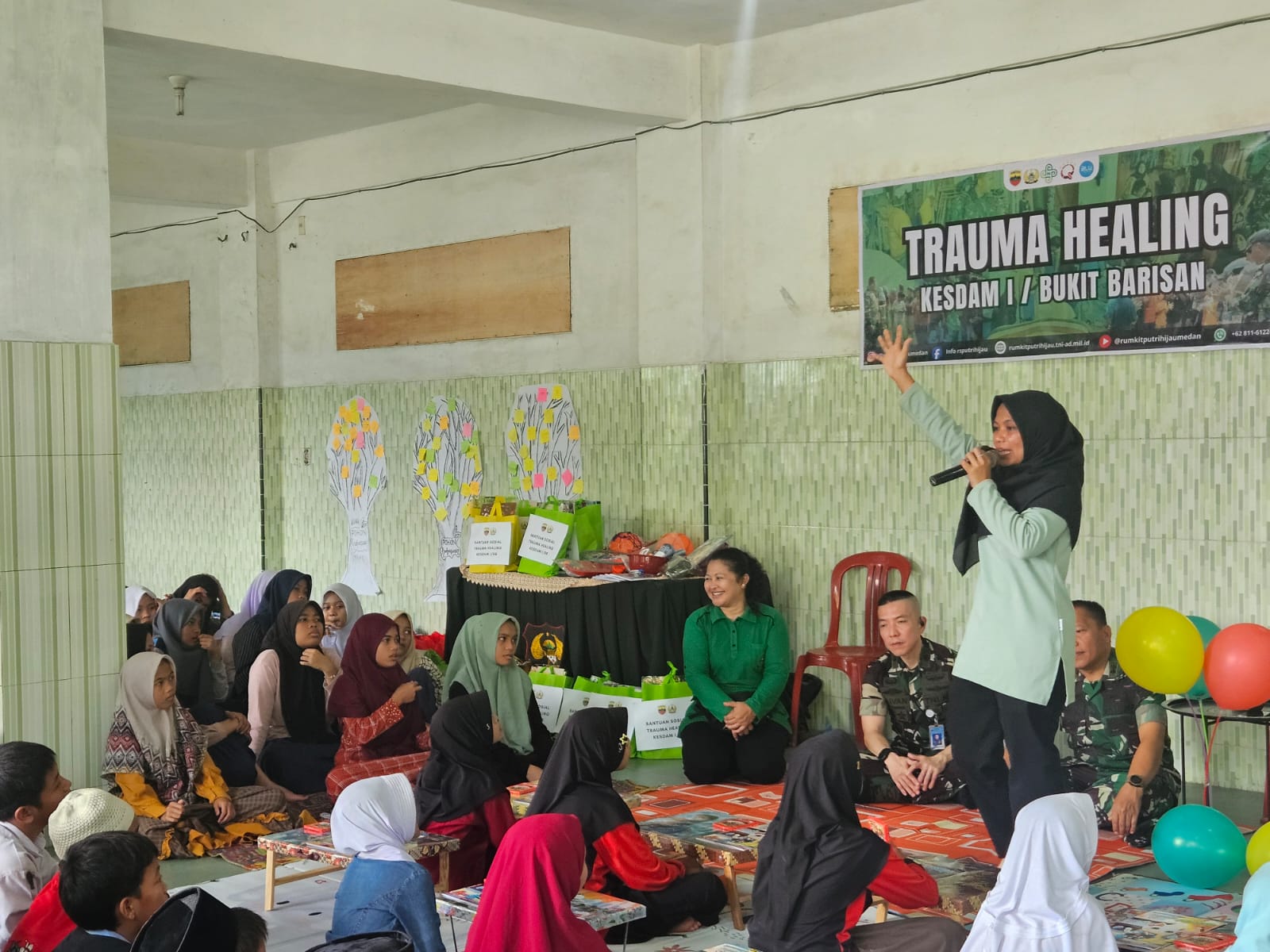 Kegiatan tersebut dilaksanakan Kesdam I/BB bersama Persit Kartika Chandra Kirana (KCK) Ranting 5 Kesehatan Cabang IV PD I/BB sebagai bentuk kepedulian TNI terhadap pemulihan kesehatan mental dan psikososial anak-anak pascabencana.