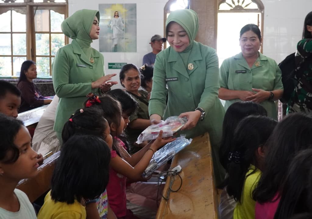 Ketua Persit KCK Daerah I/BB Didampingi Dandim 0210/TU Salurkan Bantuan untuk Korban Longsor di Gereja HKBP Lobu Pining