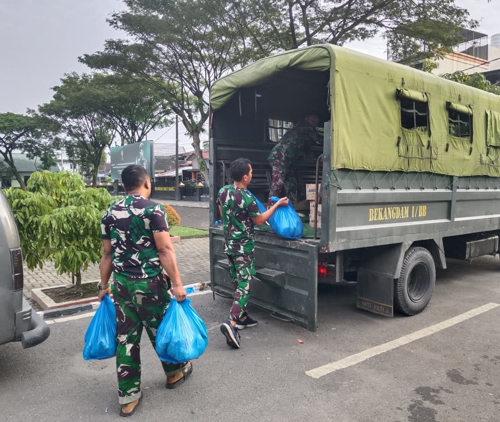 Medan – Kodam I/BB melalui Bekangdam I/BB mendistribusikan 14.225 nasi bungkus kepada Kodim 0201/Medan untuk membantu warga yang terdampak banjir di sejumlah kawasan Kota Medan, Minggu (30/11/2025). Bantuan ini merupakan bagian dari langkah cepat Kodam I/BB dalam mendukung penanganan banjir yang masih berlangsung.