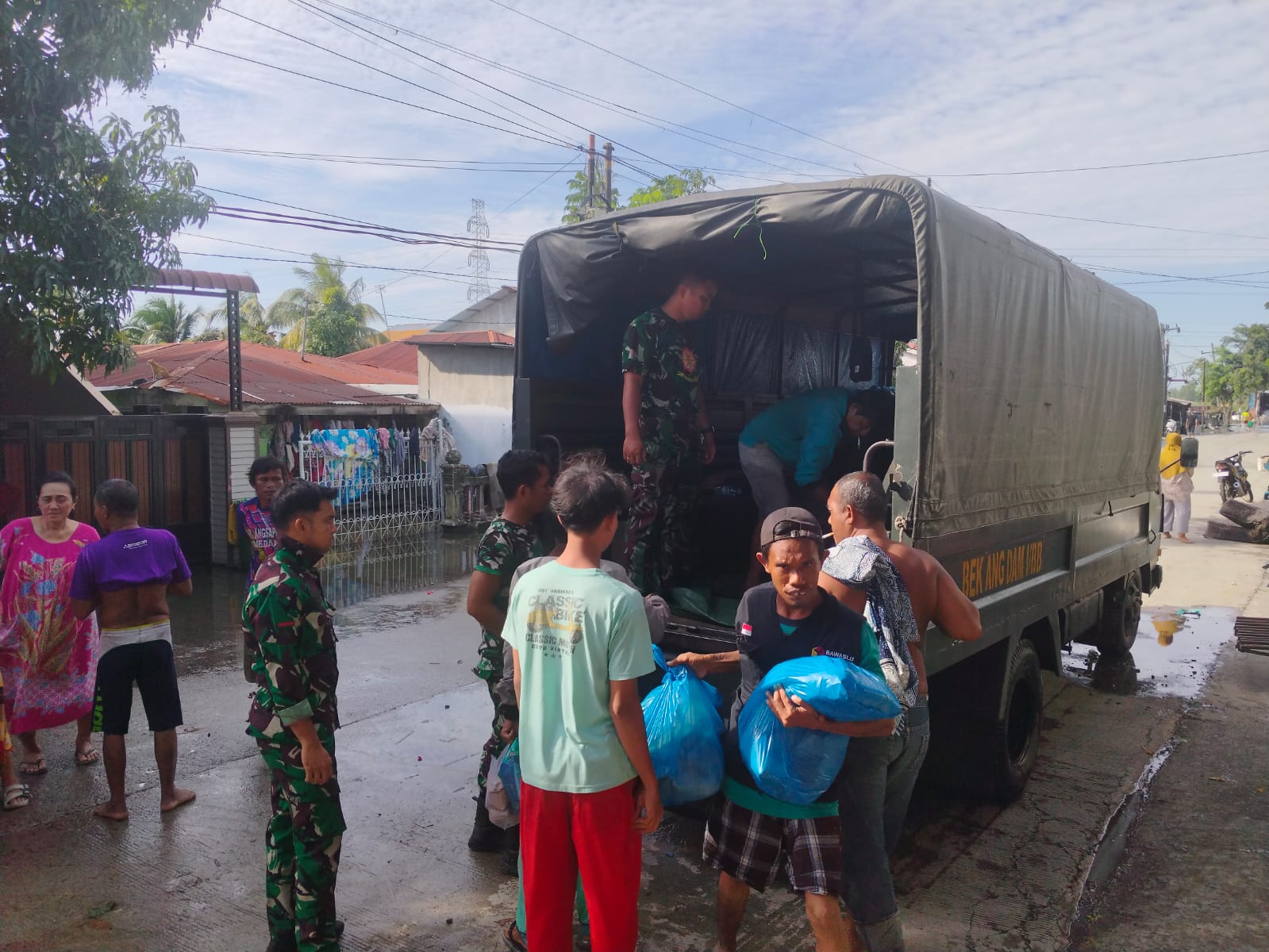 Distribusi nasi bungkus ini dilakukan untuk memastikan kebutuhan makan warga tetap terpenuhi selama proses penanganan banjir, terutama di wilayah yang aksesnya masih terbatas.