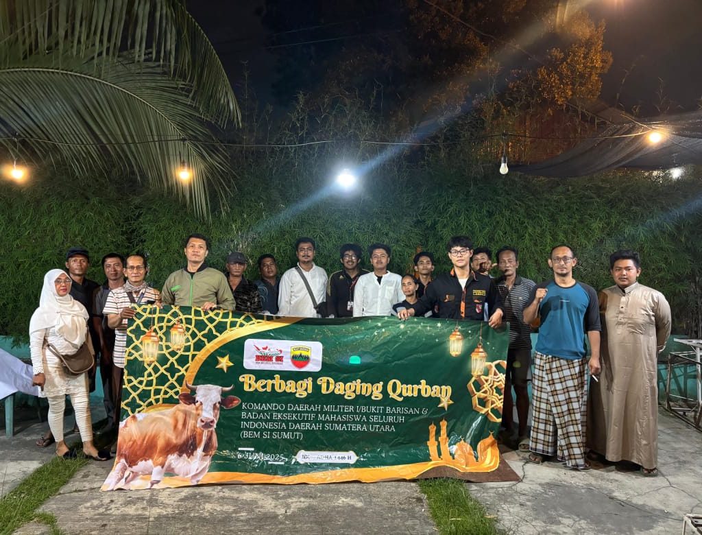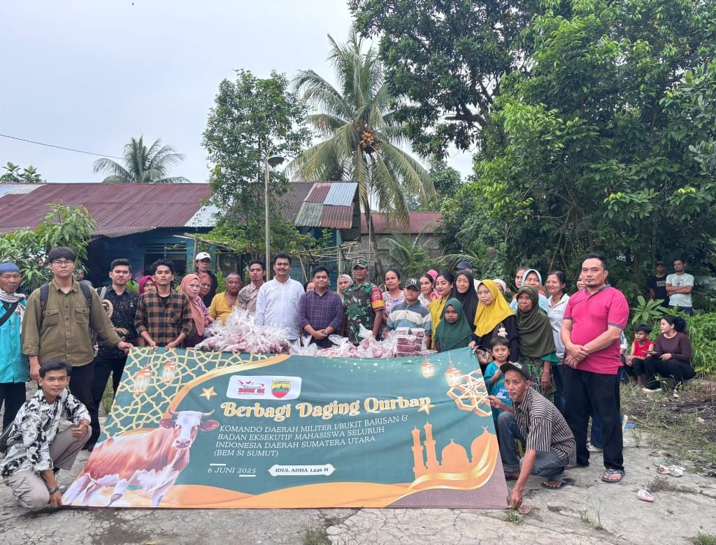 Medan – Kodam I/Bukit Barisan menyalurkan 1.200 paket daging kurban kepada masyarakat yang membutuhkan, dengan melibatkan Badan Eksekutif Mahasiswa (BEM) dari berbagai perguruan tinggi di Sumatera Utara. Kegiatan ini diawali dengan penyerahan simbolis di halaman Masjid Taqwa Makodam I/BB pada Jumat (6/6/2025), yang turut dihadiri perwakilan mahasiswa dari sejumlah kampus.