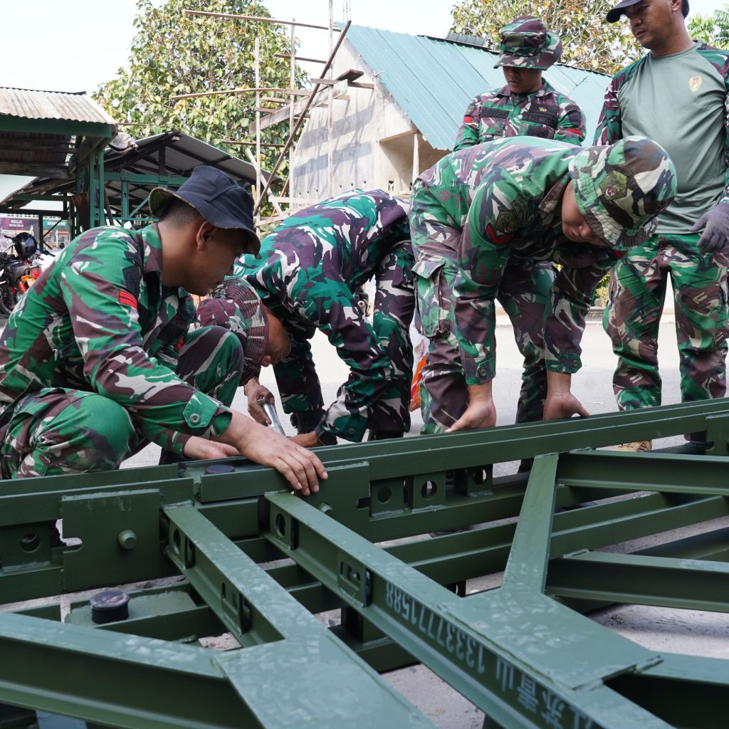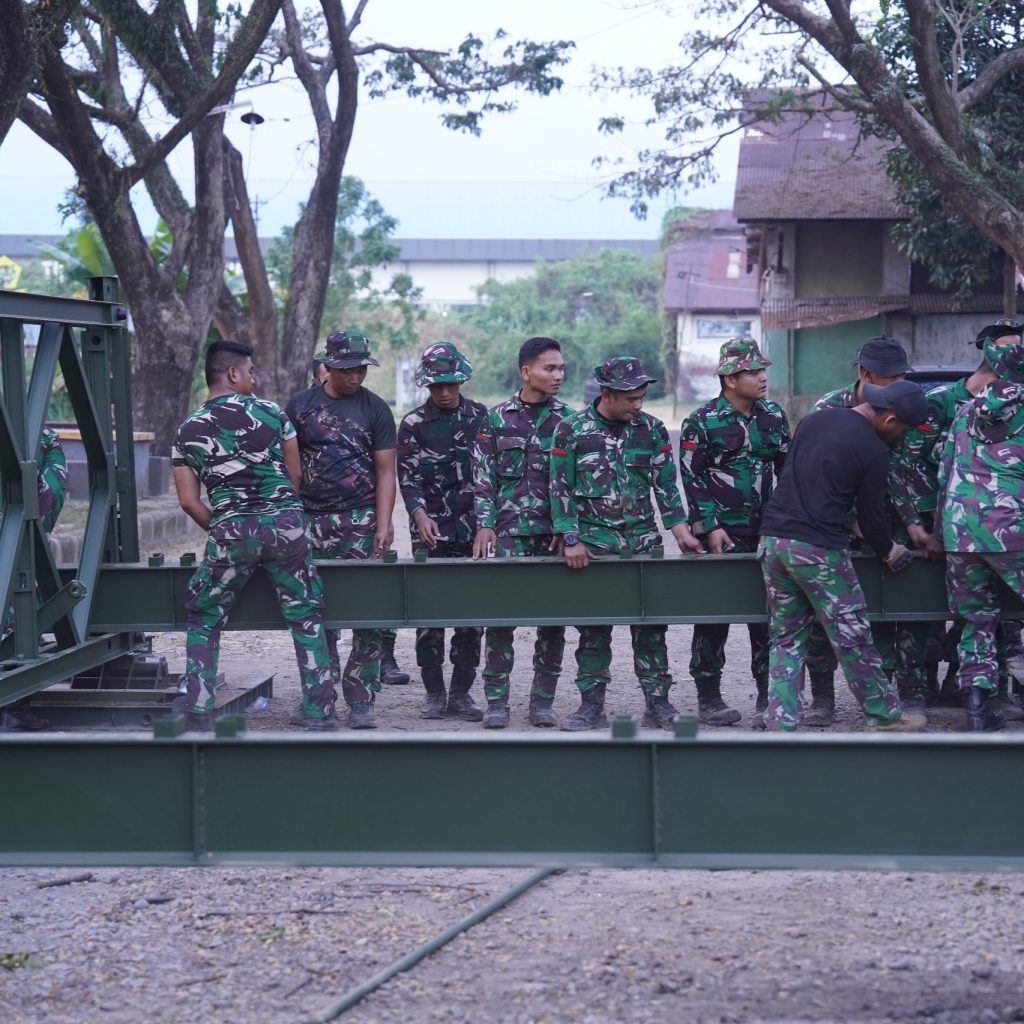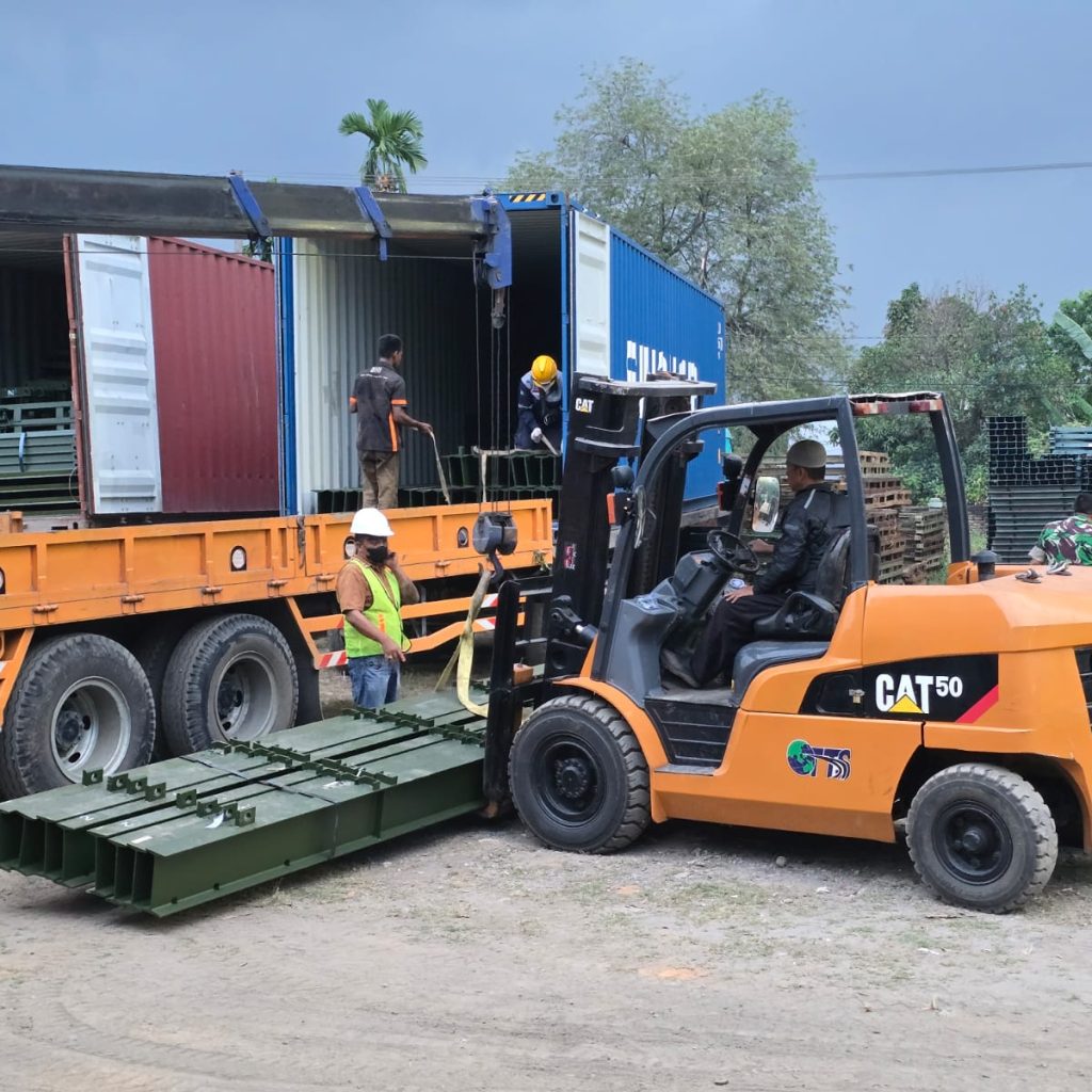 Setibanya di dermaga, kegiatan bongkar muat material jembatan modular dilaksanakan dari kapal untuk selanjutnya dimuat ke kendaraan truk trailer. Seluruh material kemudian digeser menuju Kompi Bantuan Yon Zipur I/DD yang berlokasi di Jalan Pulau Brayan, Medan, guna mendukung proses perakitan dan uji fungsi alat.