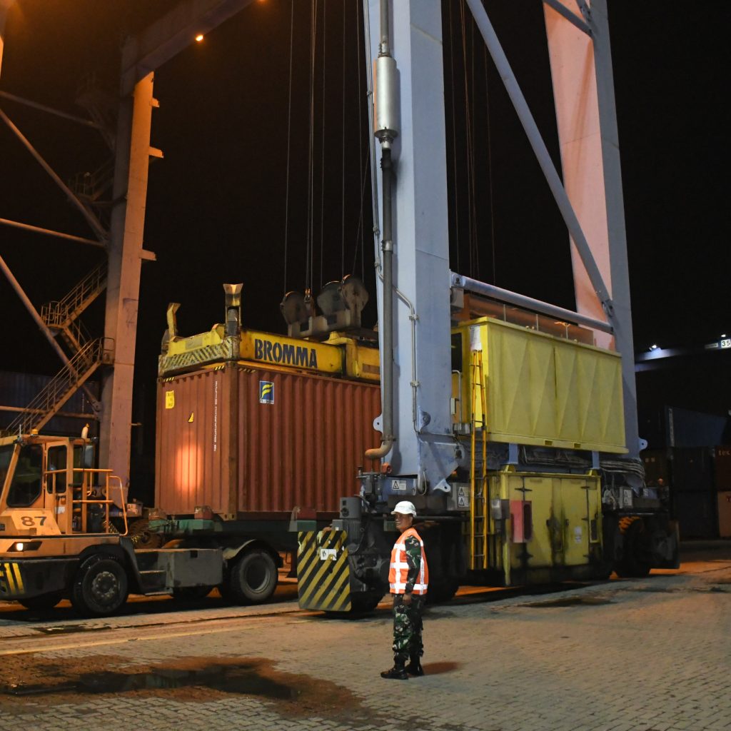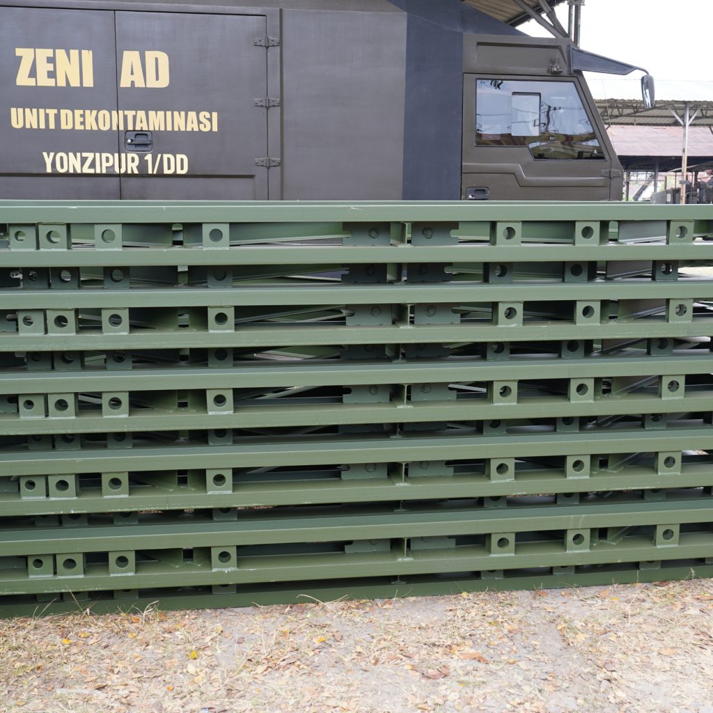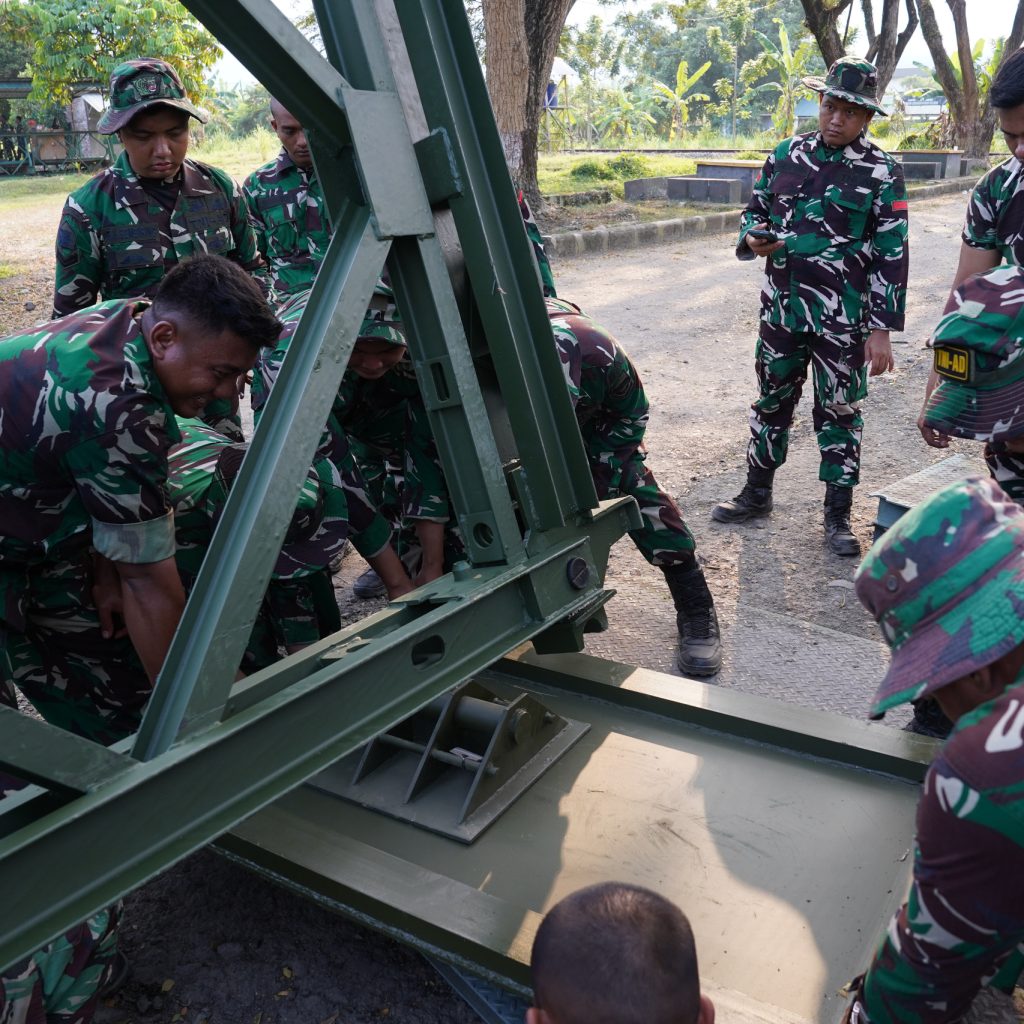 Setibanya di dermaga, kegiatan bongkar muat material jembatan modular dilaksanakan dari kapal untuk selanjutnya dimuat ke kendaraan truk trailer. Seluruh material kemudian digeser menuju Kompi Bantuan Yon Zipur I/DD yang berlokasi di Jalan Pulau Brayan, Medan, guna mendukung proses perakitan dan uji fungsi alat.