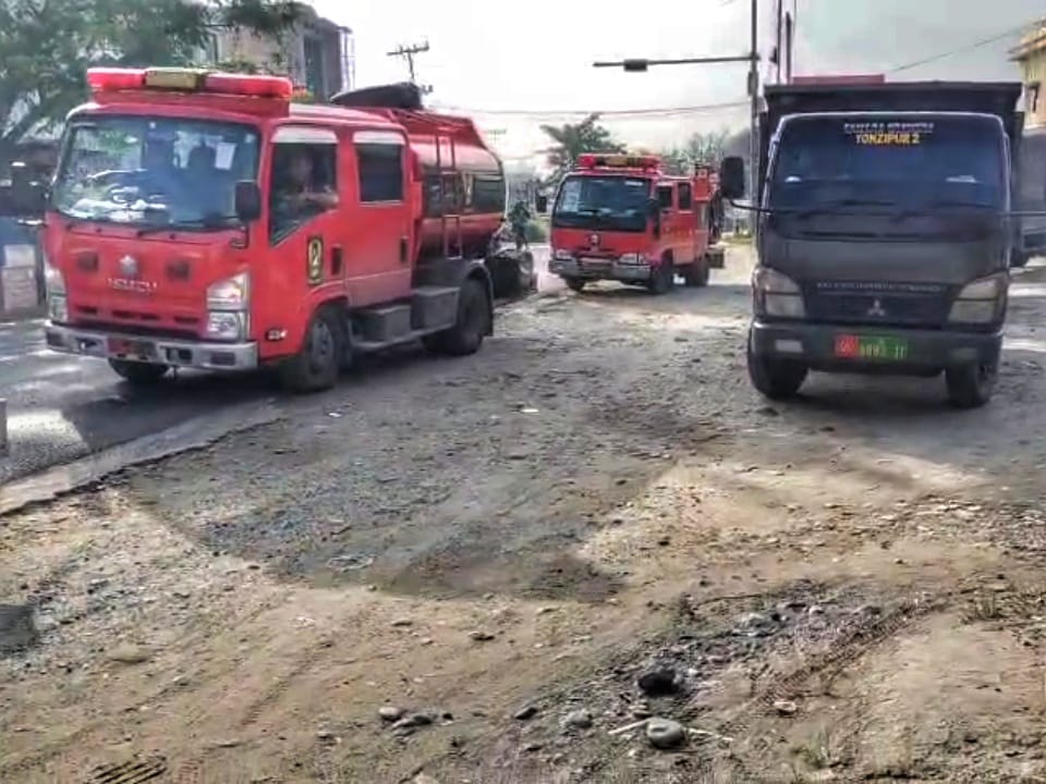 Empat unit kendaraan pemadam kebakaran dengan kapasitas air 1.500 hingga 3.000 liter juga disiagakan untuk membantu penanganan potensi kebakaran serta penyemprotan area terdampak guna menjaga keselamatan masyarakat dan lingkungan sekitar.