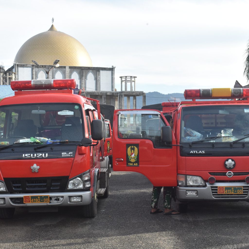 Sebanyak 10 unit dump truk, 2 unit truk angkut personel, dan 4 unit kendaraan pemadam kebakaran tiba di posko terpadu. Kendaraan tersebut disiapkan untuk mendukung kegiatan pengangkutan material, pembersihan puing, serta distribusi logistik ke wilayah terdampak bencana.