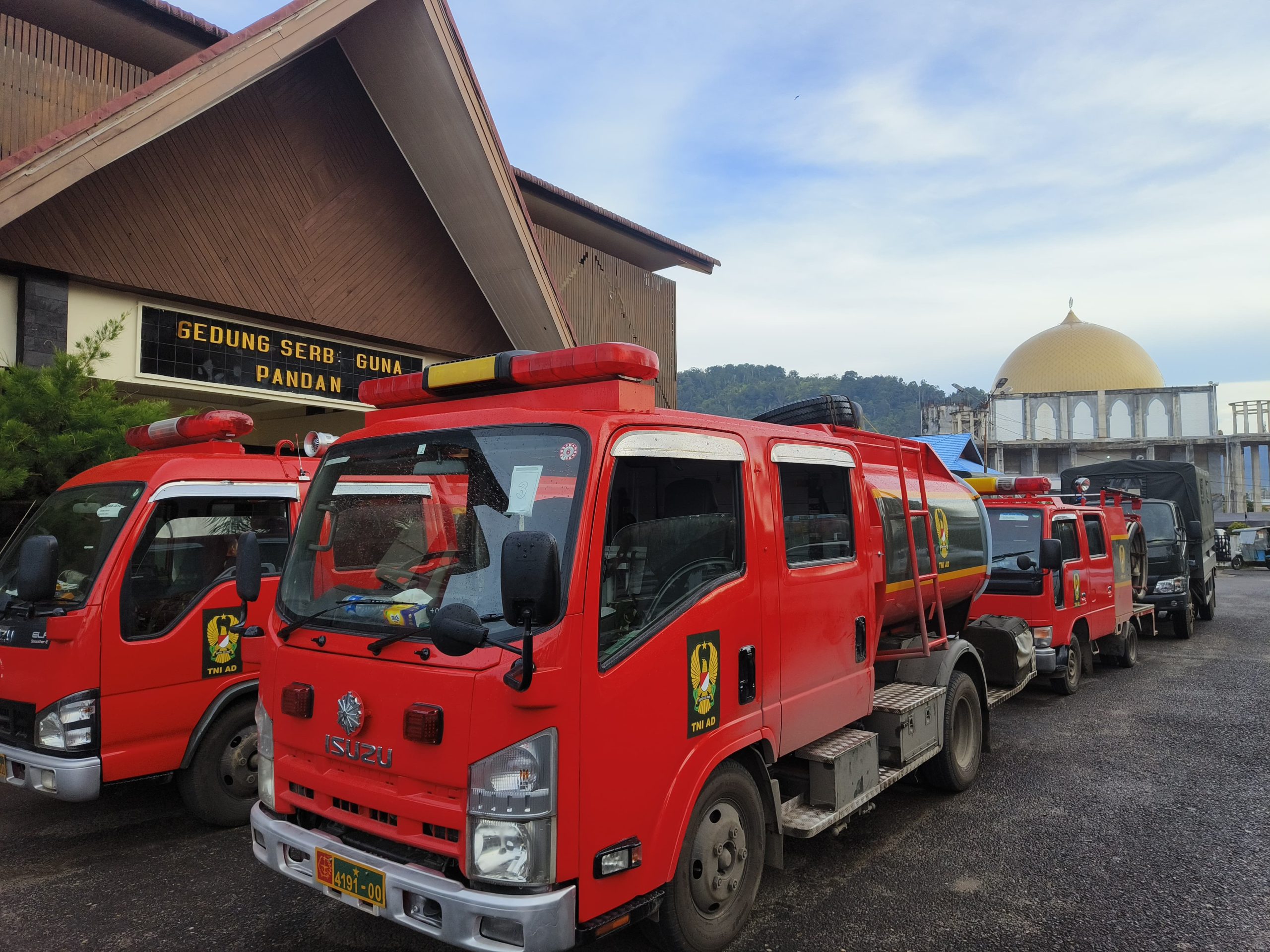 Sebanyak 10 unit dump truk, 2 unit truk angkut personel, dan 4 unit kendaraan pemadam kebakaran tiba di posko terpadu. Kendaraan tersebut disiapkan untuk mendukung kegiatan pengangkutan material, pembersihan puing, serta distribusi logistik ke wilayah terdampak bencana.