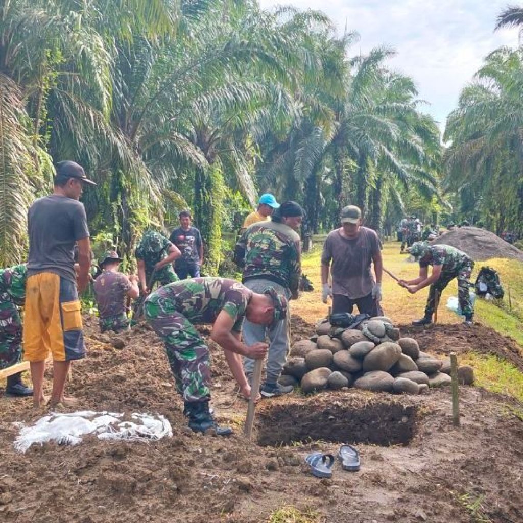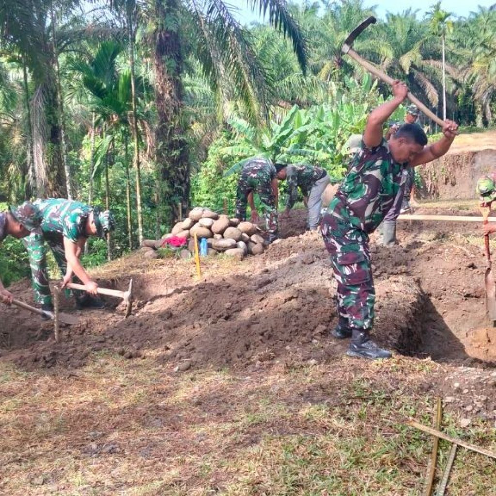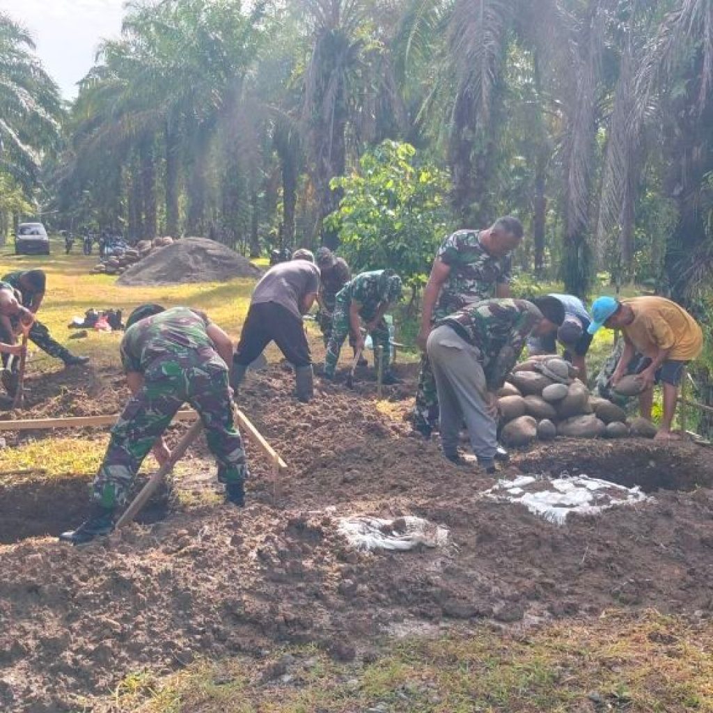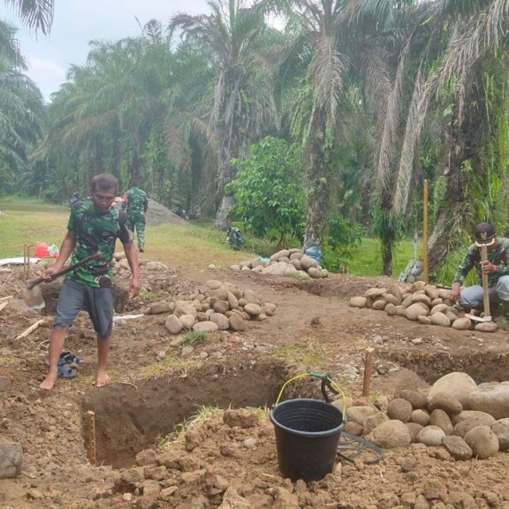 Pembangunan melibatkan 13 personel gabungan TNI dan masyarakat jajaran Kodim 0203/Langkat yang bekerja secara gotong royong, penuh semangat kebersamaan, dan saling bahu-membahu dalam setiap tahapan pengerjaan di lapangan guna memastikan proses berjalan lancar.