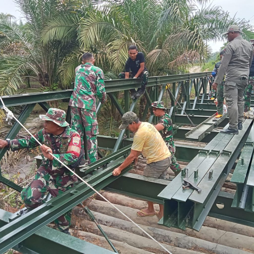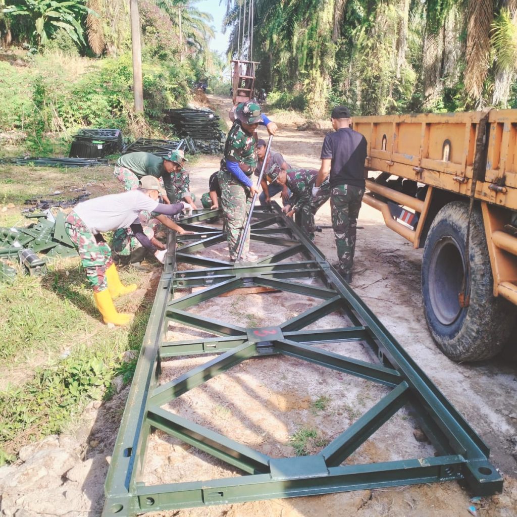 Kodim 0207/Simalungun Bersama Yonzipur 1/DD Tuntaskan Pembangunan Jembatan Modular di Huta Sagala Toruan