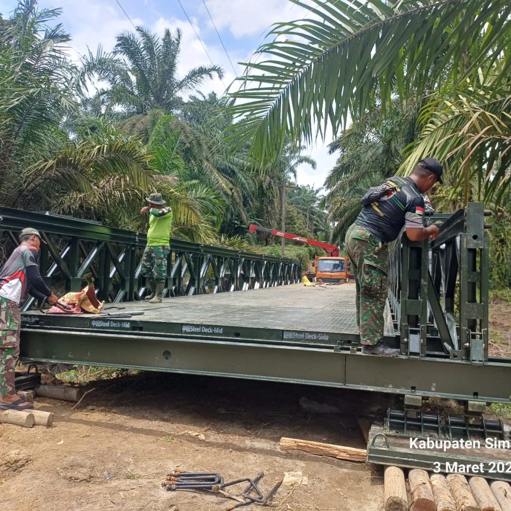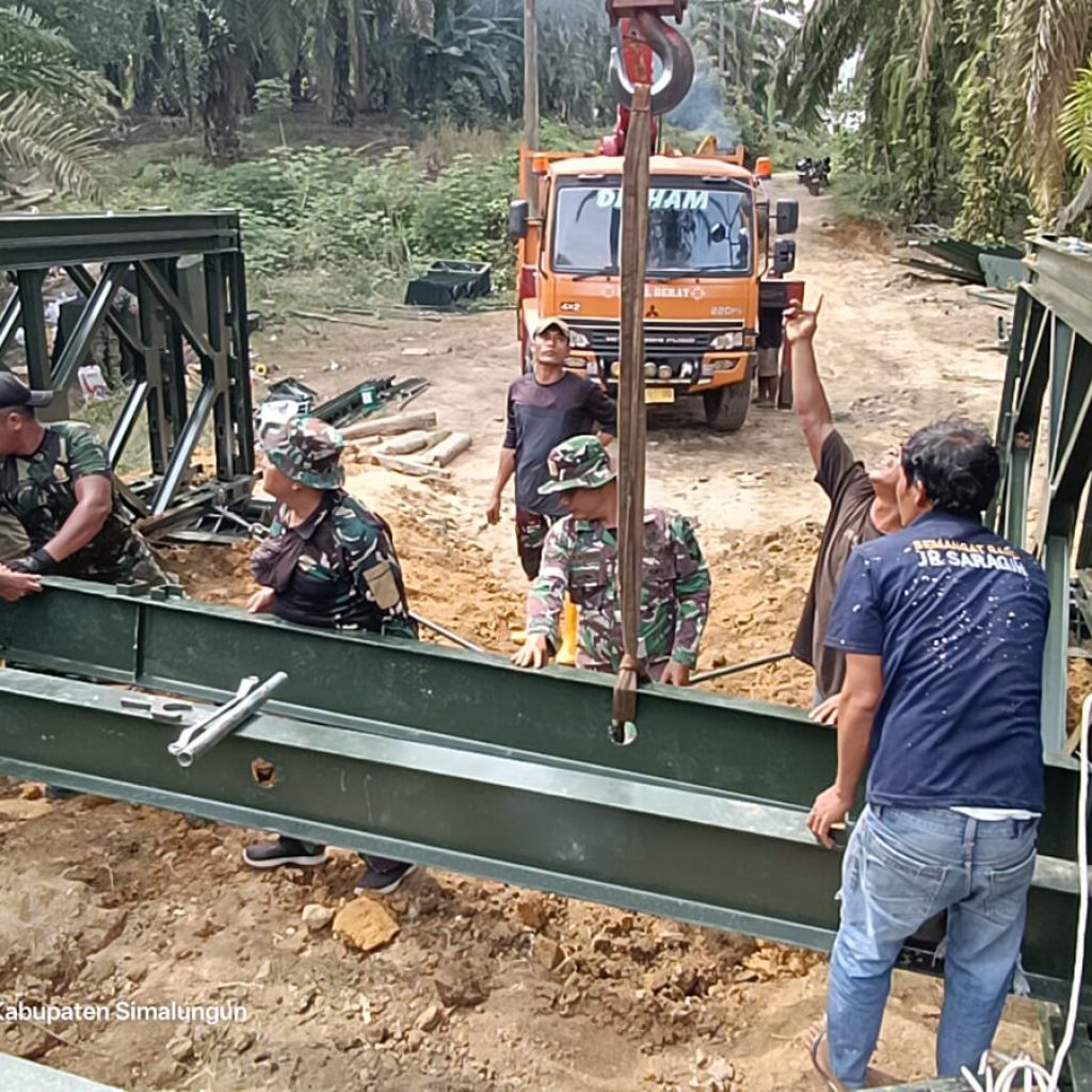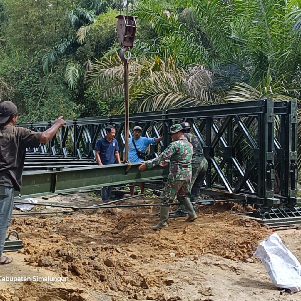 Simalungun – Kodim 0207/Simalungun bersama Satuan Yonzipur 1/DD menuntaskan pembangunan jembatan modular yang berlokasi di Huta Sagala Toruan, Desa Marihat Raja, Kecamatan Dolok Panribuan, Kabupaten Simalungun, Rabu (25/3/2026). Jembatan dengan panjang 12,5 meter tersebut dibangun di atas Sungai Silimutan untuk mempermudah akses mobilitas masyarakat setempat.