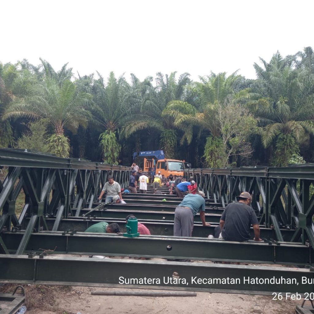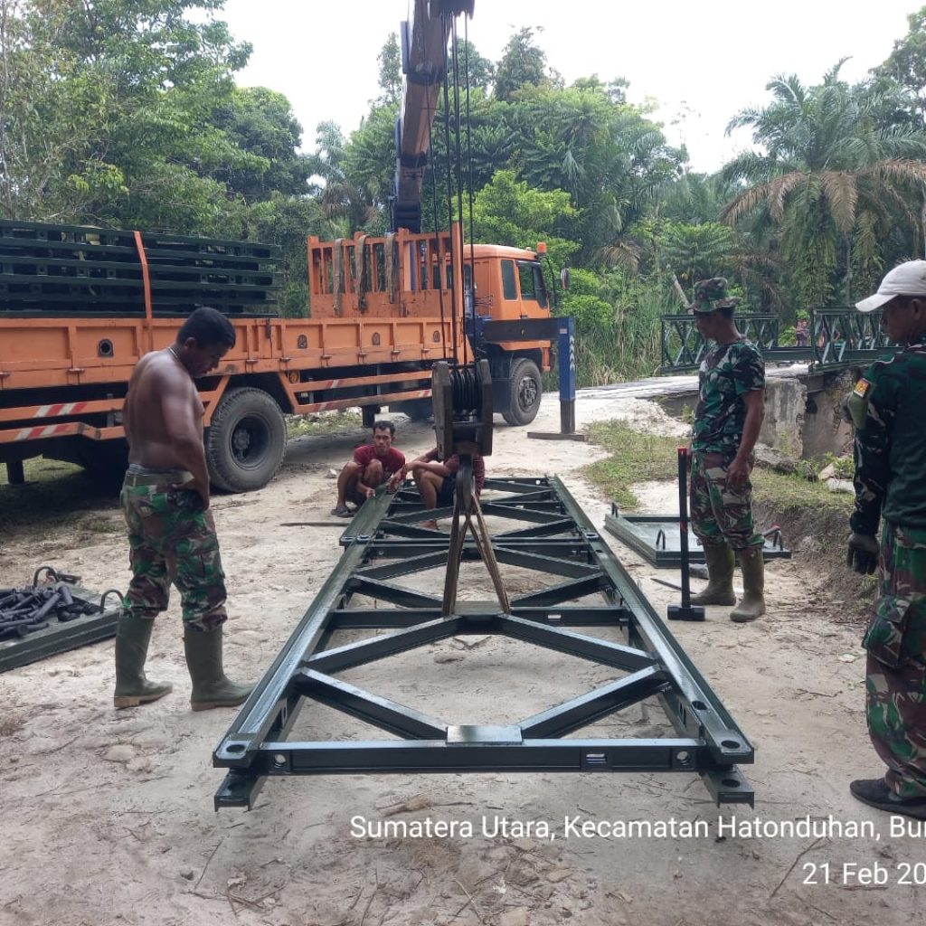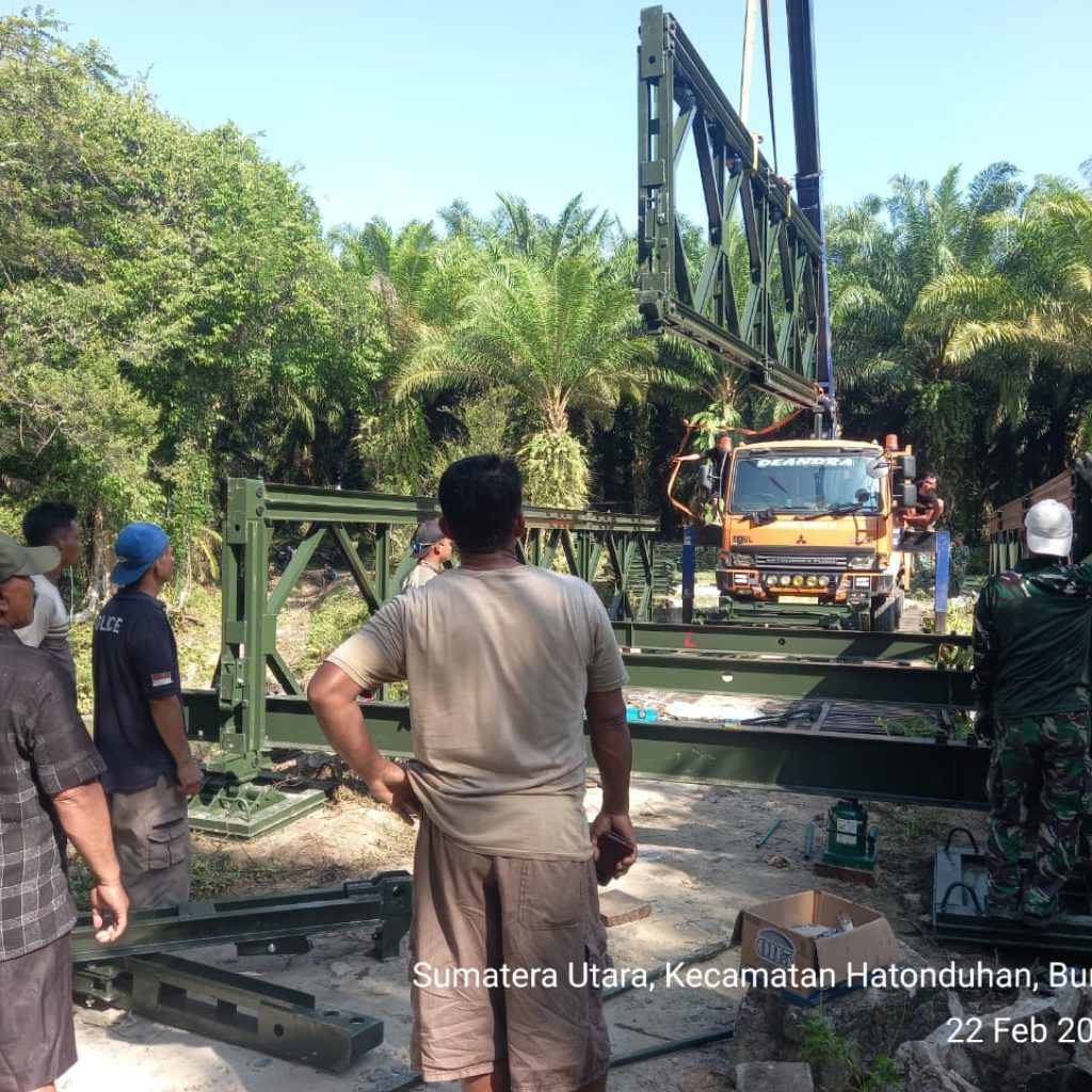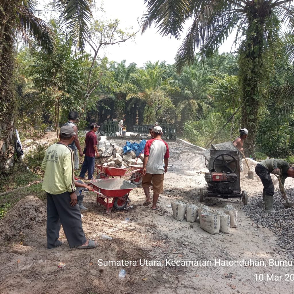 Pengerjaan jembatan dilakukan oleh personel Kodim 0207/Simalungun melalui Koramil 10/Tanah Jawa (TJ) bersama prajurit Yonzipur I/DD dan melibatkan partisipasi aktif masyarakat setempat. Kolaborasi tersebut membuat seluruh tahapan pekerjaan dapat diselesaikan secara efektif dan tepat waktu.