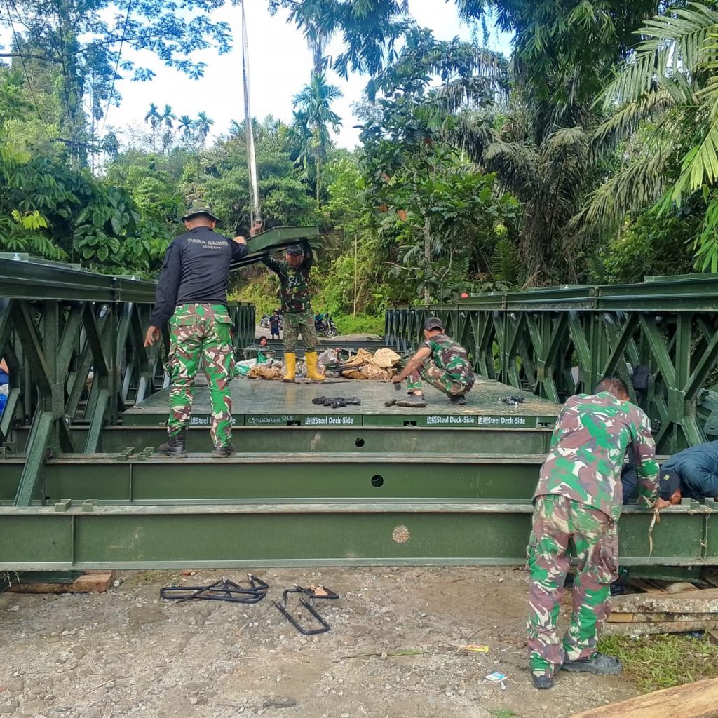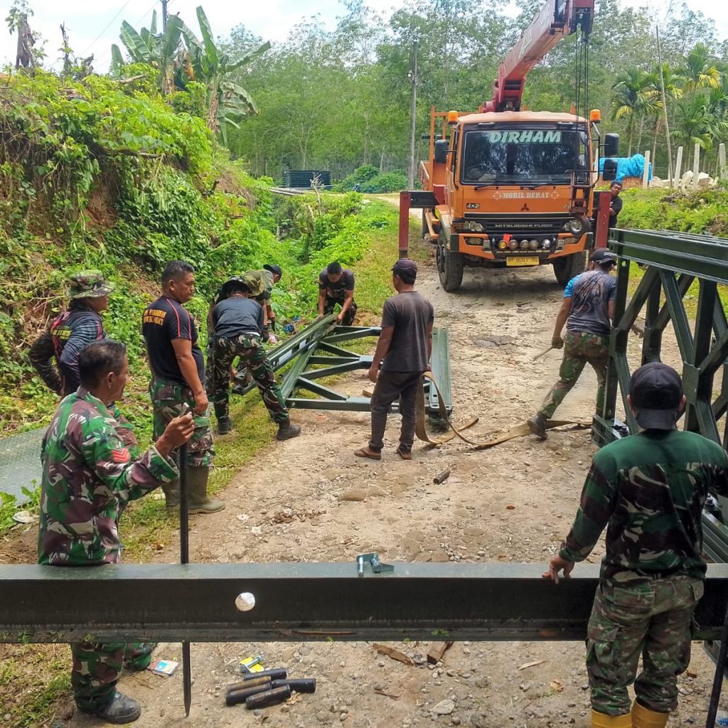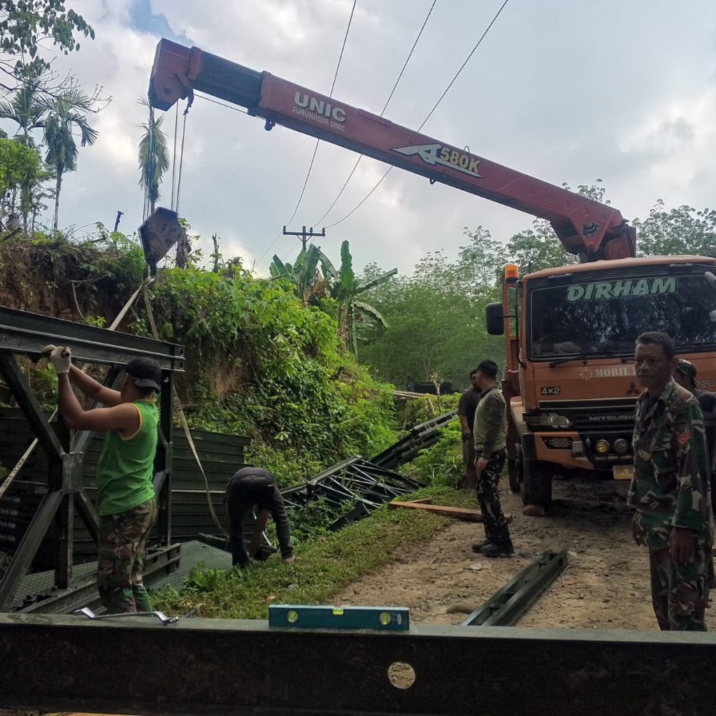 Simalungun – Kodim 0207/Simalungun bersama prajurit Yonzipur I/DD menuntaskan percepatan pembangunan jembatan modular di Huta III Bah Sulung, Nagori Dolok Maraja, Kecamatan Tapian Dolok, Kabupaten Simalungun, Minggu (5/4/2026). Jembatan tersebut kini telah rampung dan sudah dapat dimanfaatkan masyarakat untuk menunjang aktivitas sehari-hari.