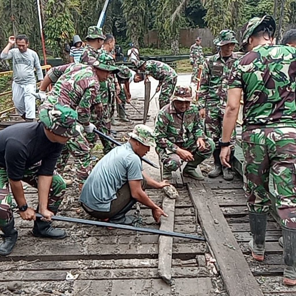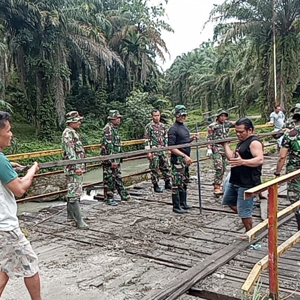 Pengerjaan dilakukan oleh Koramil 10/Tanah Jawa bersama Satuan Yonzipur I/DD dengan melibatkan partisipasi masyarakat setempat. Kolaborasi tersebut mempercepat proses pembangunan sehingga jembatan dapat segera dimanfaatkan oleh warga.