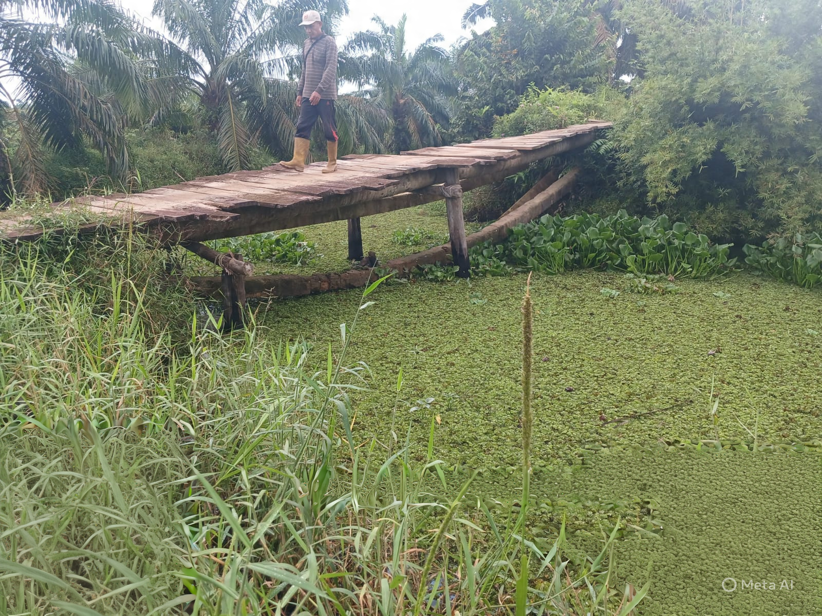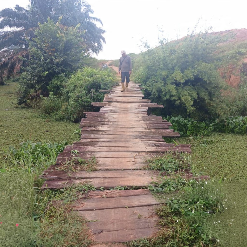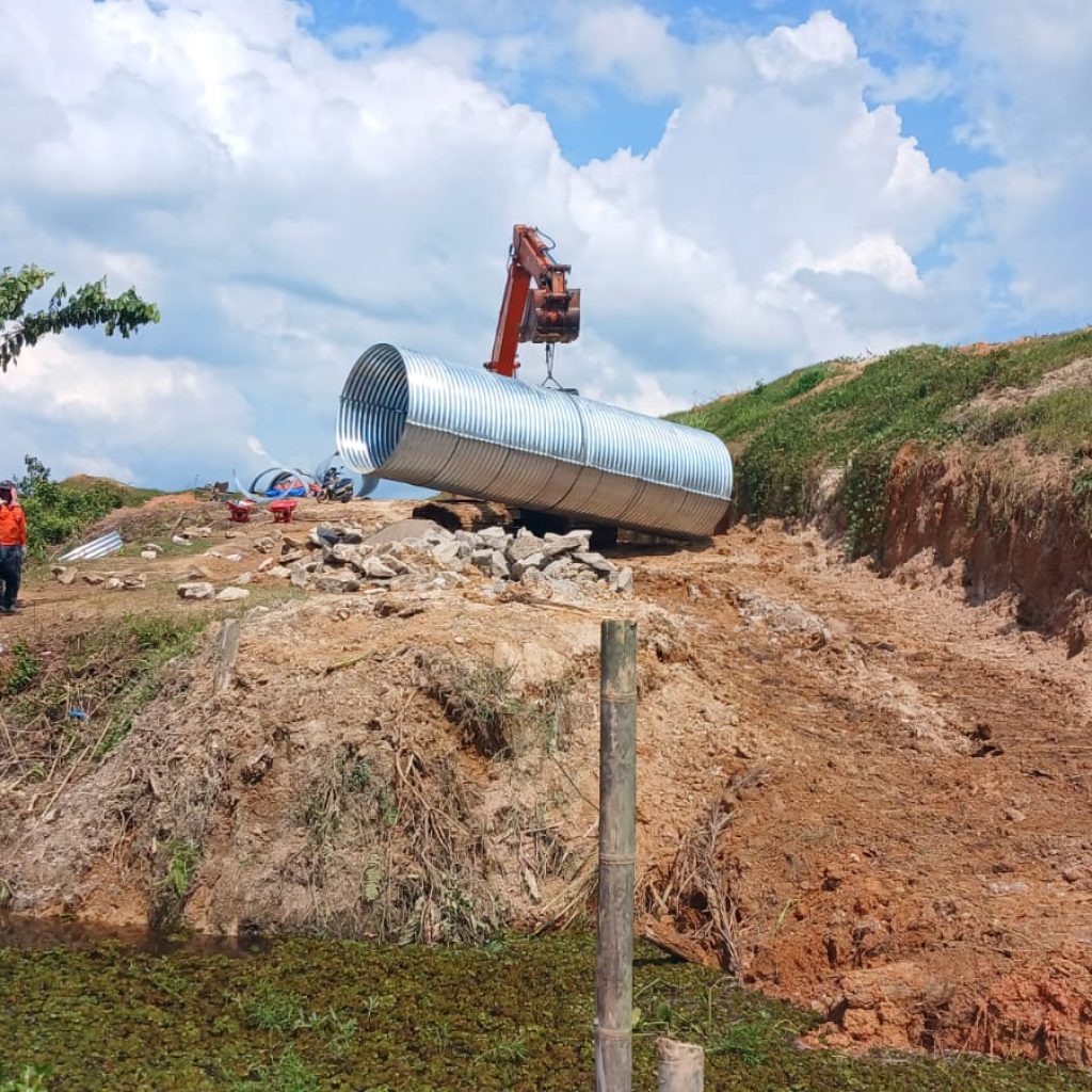 Adapun kegiatan yang dilaksanakan saat ini meliputi perakitan besi tiang cor serta pengikatan besi Aramco menggunakan cor batu padas. Berbagai material seperti rangka jembatan, semen, pasir, batu padas, serta perlengkapan pendukung lainnya telah tersedia dan dimanfaatkan dalam proses pembangunan, meskipun kondisi cuaca yang tidak menentu.