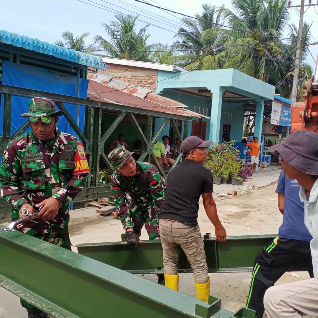 Batu Bara — Personel Kodim 0208/Asahan bersama tim teknisi Yon Zipur 1/DD menuntaskan pembangunan Jembatan Modular di Desa Sei Buah Keras, Kecamatan Medang Deras, Kabupaten Batu Bara, Senin (9/3/2026).