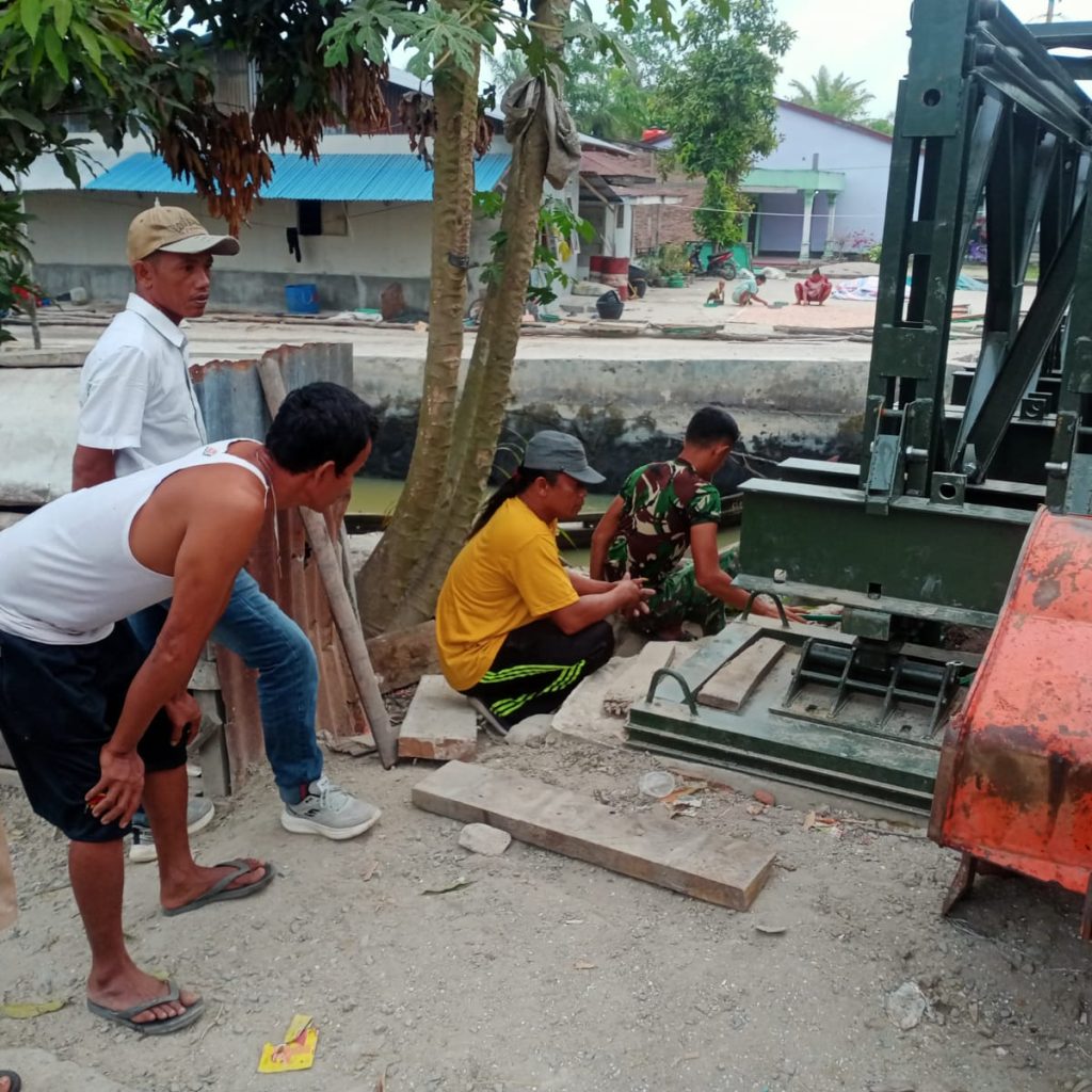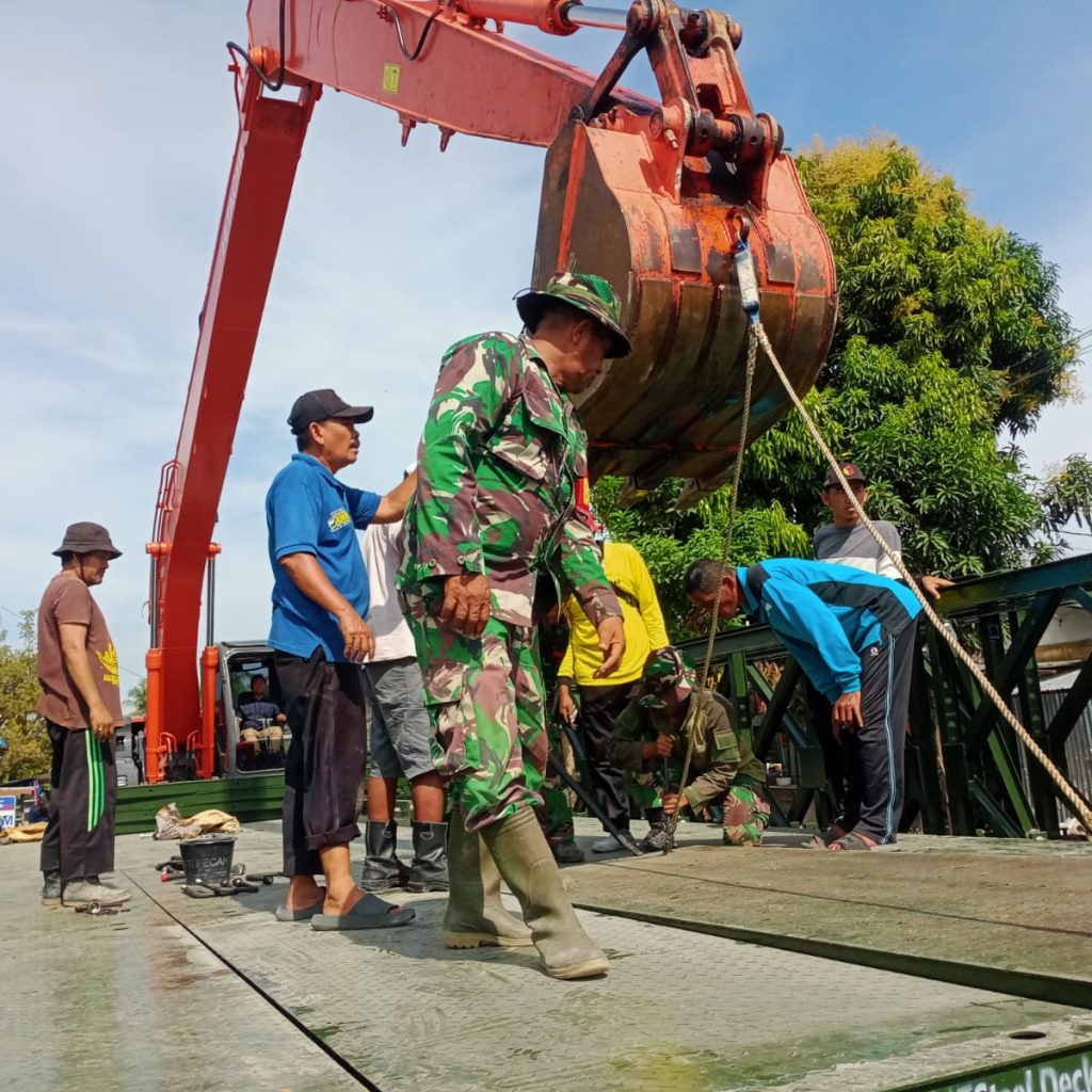 Pengerjaan jembatan melibatkan personel Kodim 0208/Asahan, tim teknisi Yon Zipur 1/DD, masyarakat setempat, serta dukungan satu unit alat berat excavator dari Pemerintah Kabupaten Batu Bara. Personel melaksanakan perakitan struktur jembatan dan pemasangan besi penguat secara manual, menyiapkan berbagai bagian konstruksi penunjang lainnya, serta memastikan seluruh proses pekerjaan berjalan efektif sesuai standar teknis.