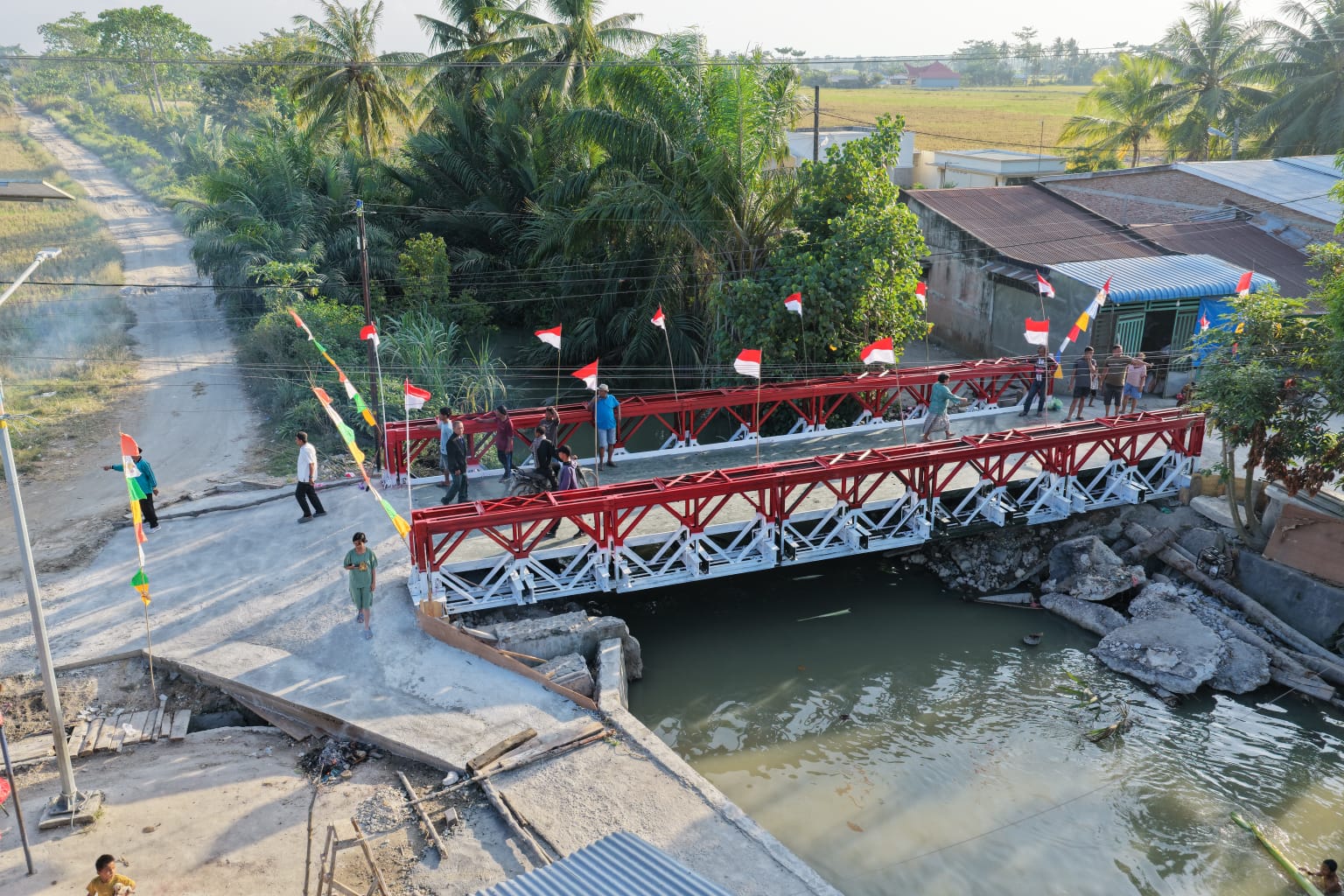 Jembatan Modular tersebut kini telah rampung 100 persen dan siap dimanfaatkan masyarakat sebagai akses penghubung antara Desa Sei Buah Keras dengan Desa Durian, Kecamatan Medang Deras, Kabupaten Batu Bara. Keberadaan jembatan ini diharapkan dapat memperlancar mobilitas warga sekaligus mendukung aktivitas sosial dan perekonomian masyarakat di wilayah tersebut.