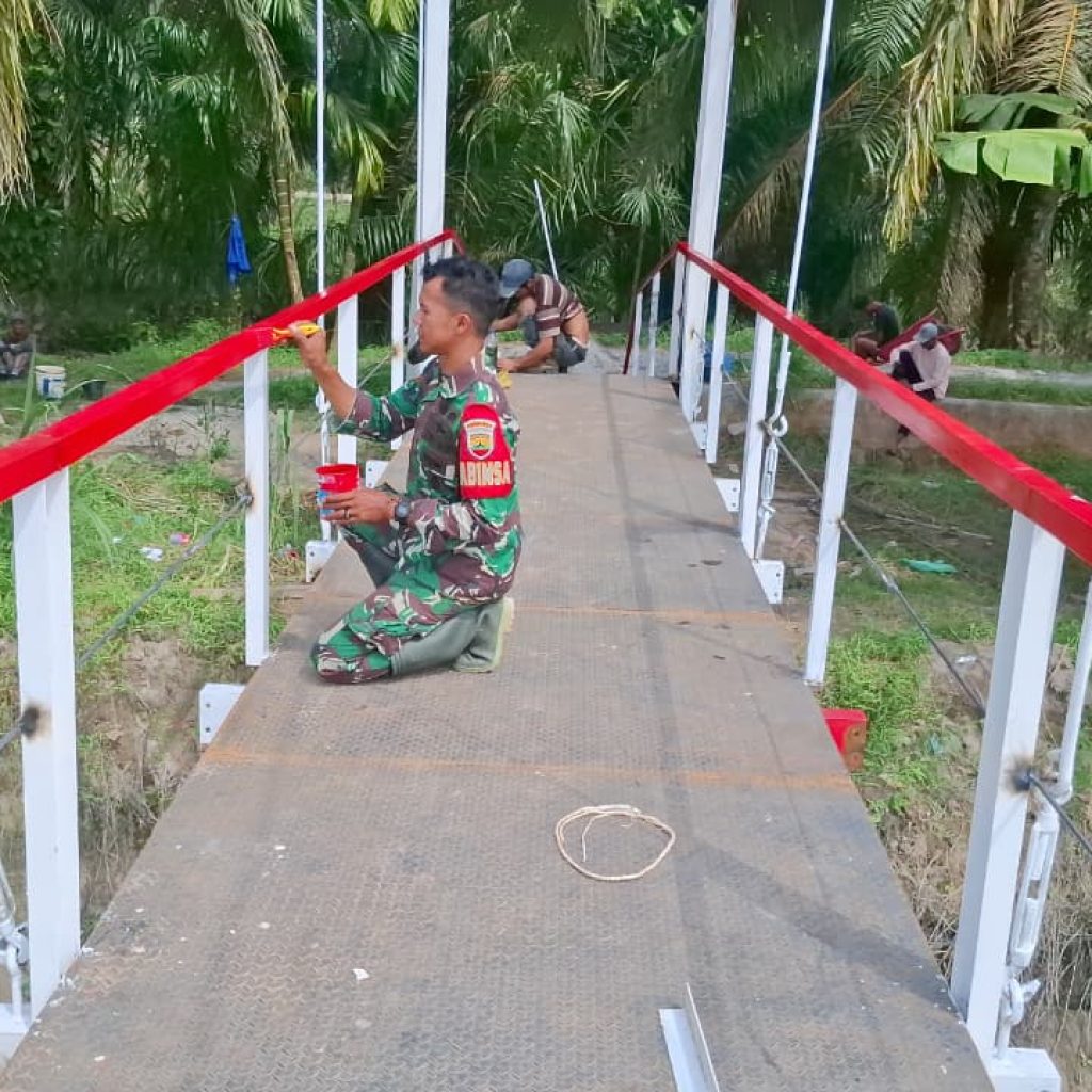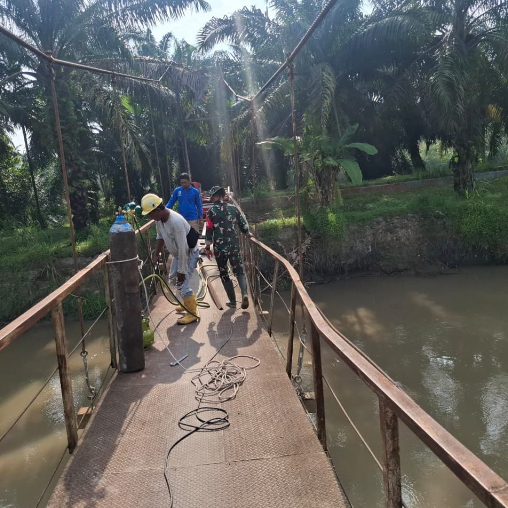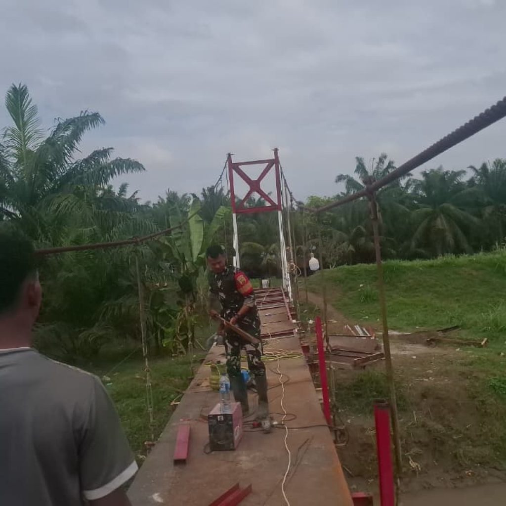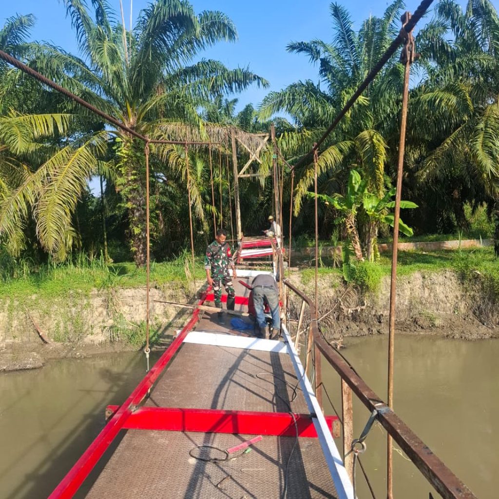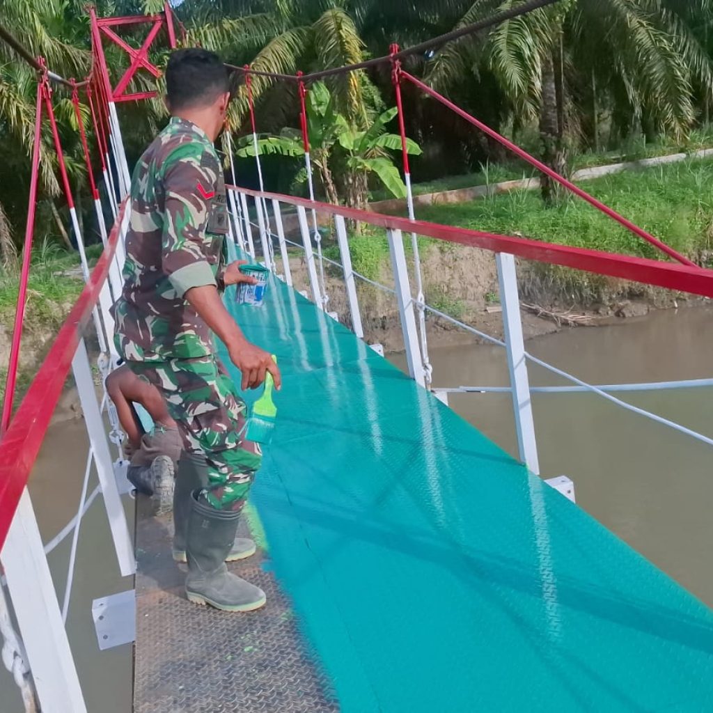 Jembatan sepanjang 67 meter dengan lebar 1,6 meter itu merupakan akses vital yang menghubungkan dua wilayah kecamatan. Dalam proses perehaban, personel melakukan penggantian dan pengelasan gelagar yang rusak, penggantian plat lantai, pembaruan pembatas jembatan, serta pengecatan hingga tahap finishing guna memastikan kekuatan dan keamanan konstruksi.