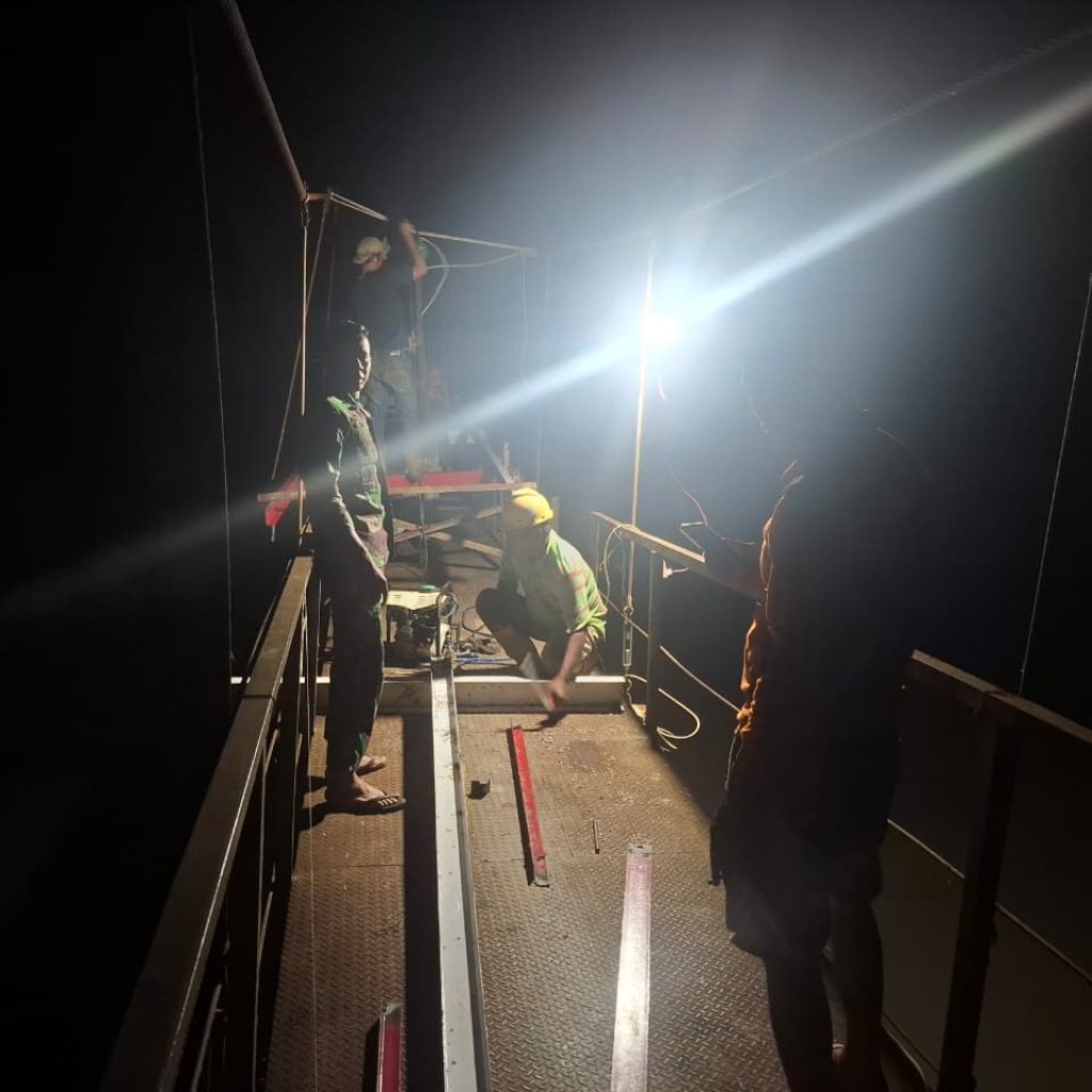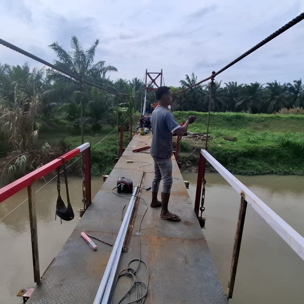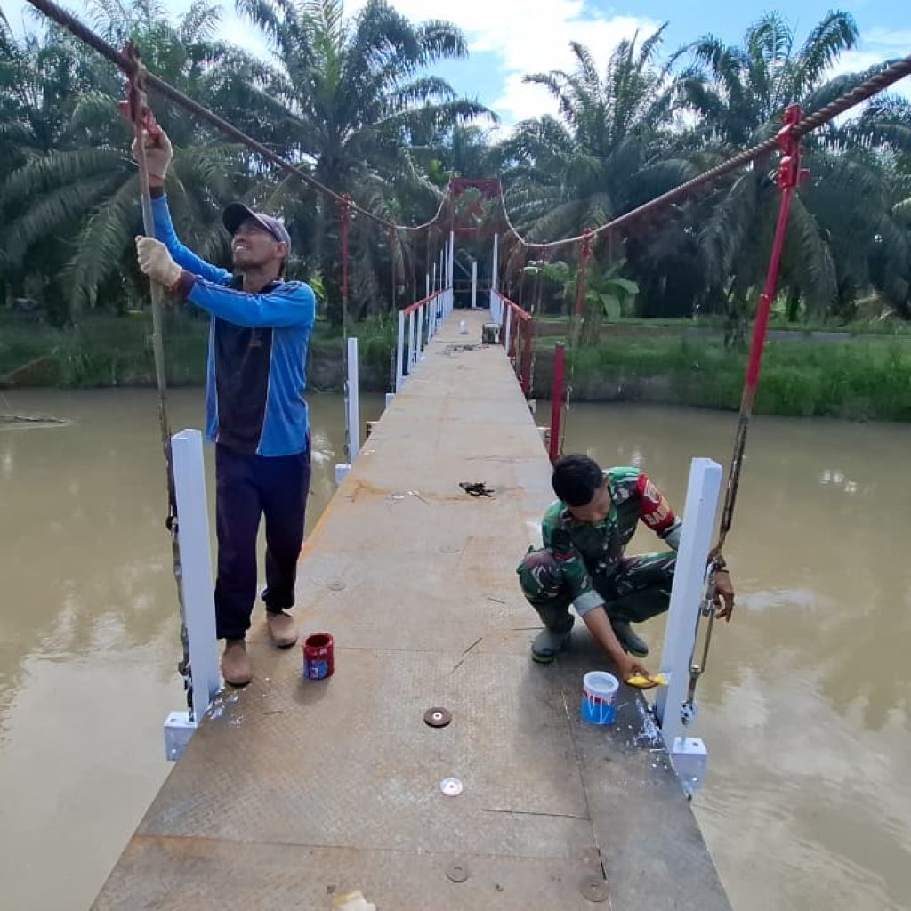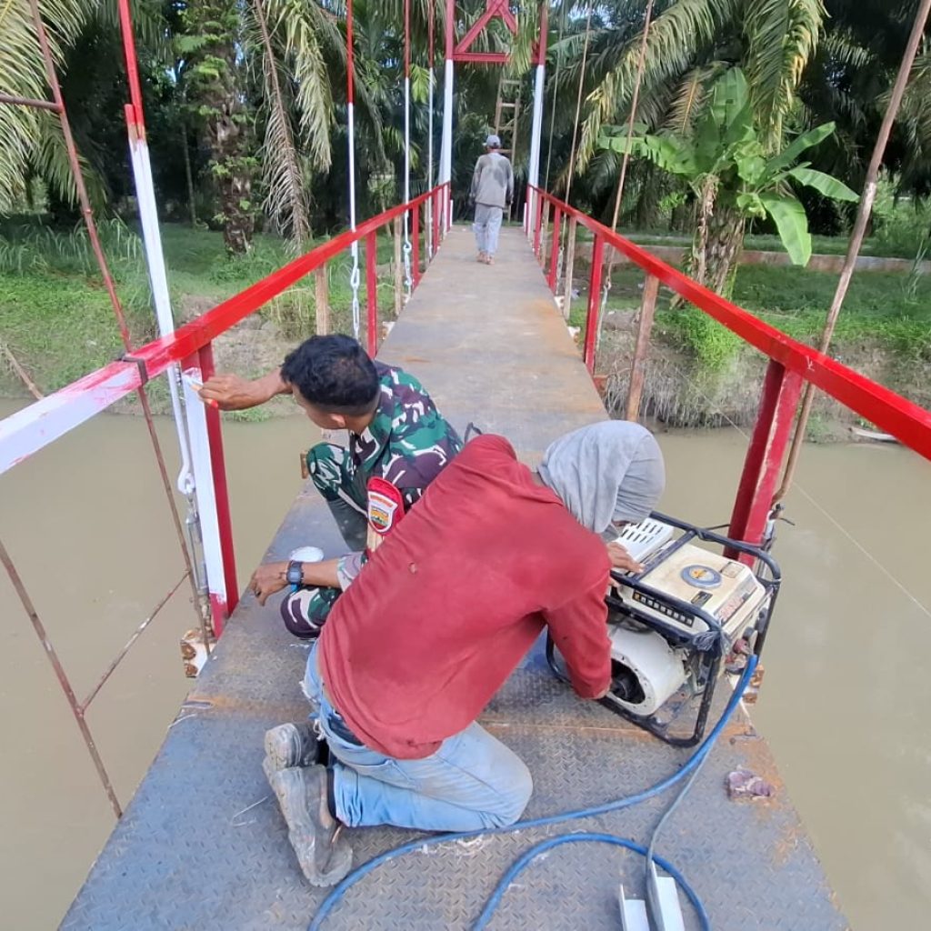 Jembatan sepanjang 67 meter dengan lebar 1,6 meter itu merupakan akses vital yang menghubungkan dua wilayah kecamatan. Dalam proses perehaban, personel melakukan penggantian dan pengelasan gelagar yang rusak, penggantian plat lantai, pembaruan pembatas jembatan, serta pengecatan hingga tahap finishing guna memastikan kekuatan dan keamanan konstruksi.