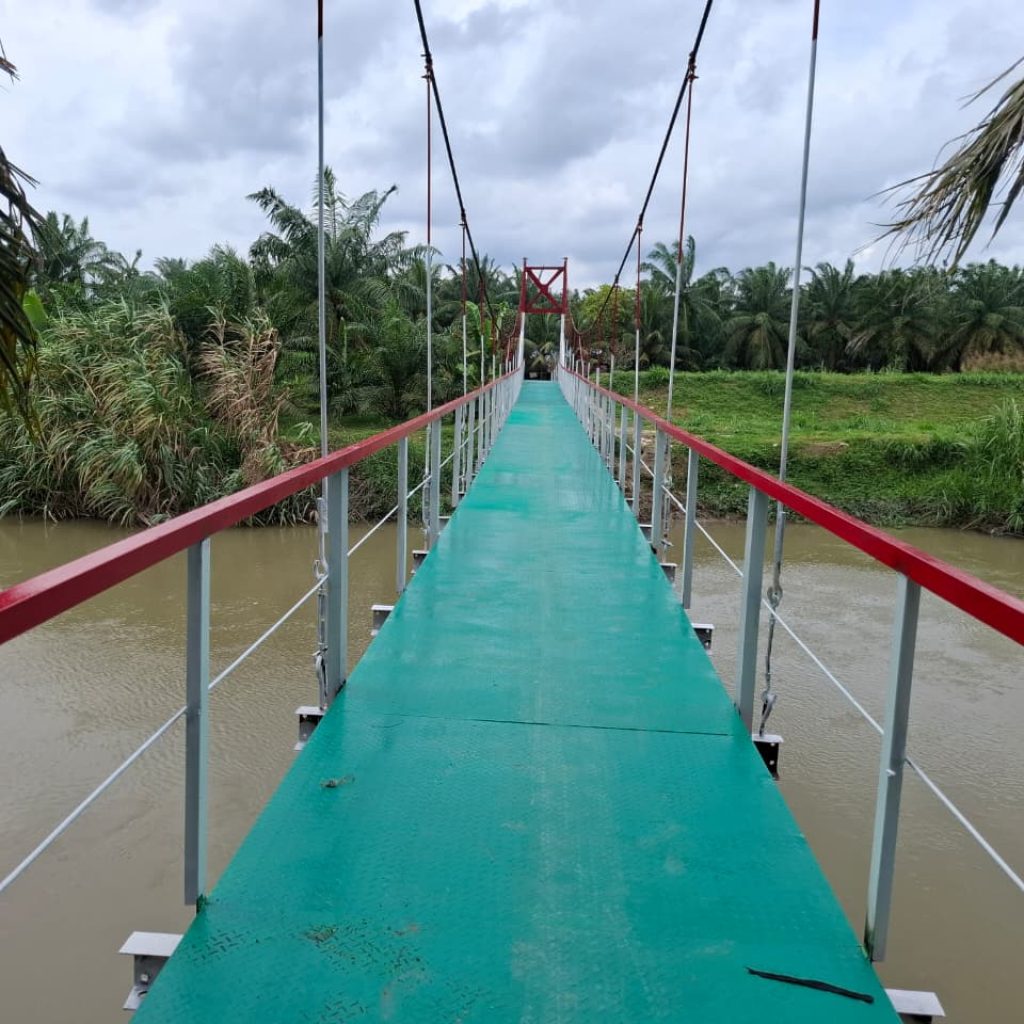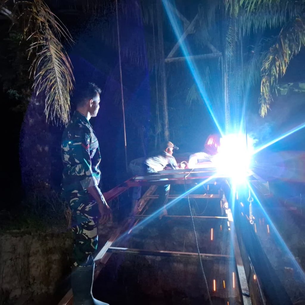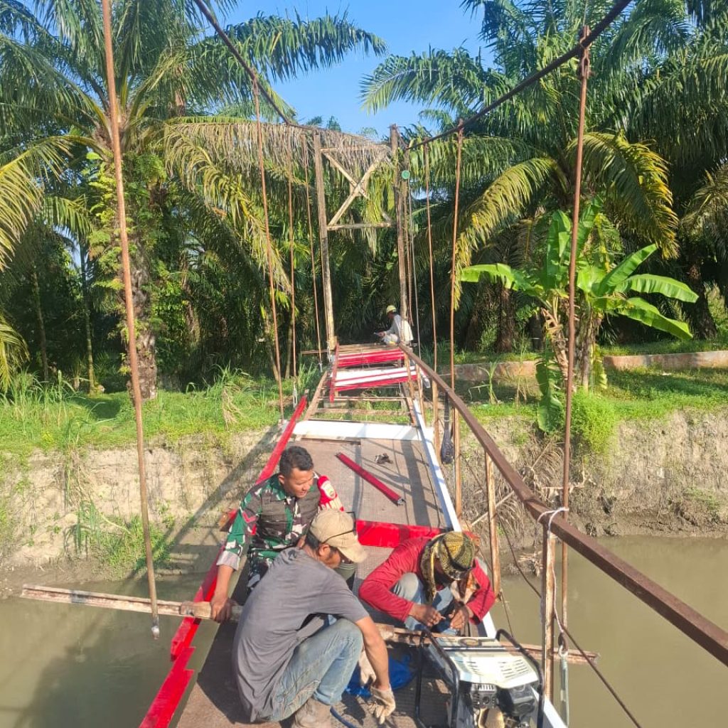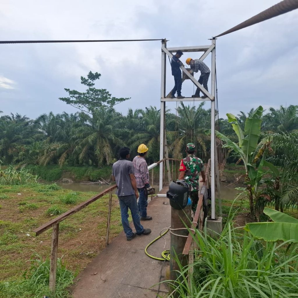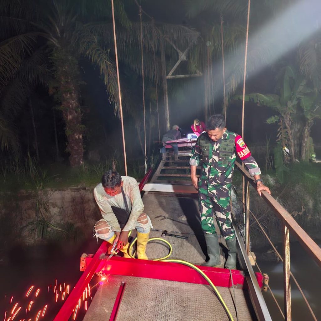 Jembatan sepanjang 67 meter dengan lebar 1,6 meter itu merupakan akses vital yang menghubungkan dua wilayah kecamatan. Dalam proses perehaban, personel melakukan penggantian dan pengelasan gelagar yang rusak, penggantian plat lantai, pembaruan pembatas jembatan, serta pengecatan hingga tahap finishing guna memastikan kekuatan dan keamanan konstruksi.
