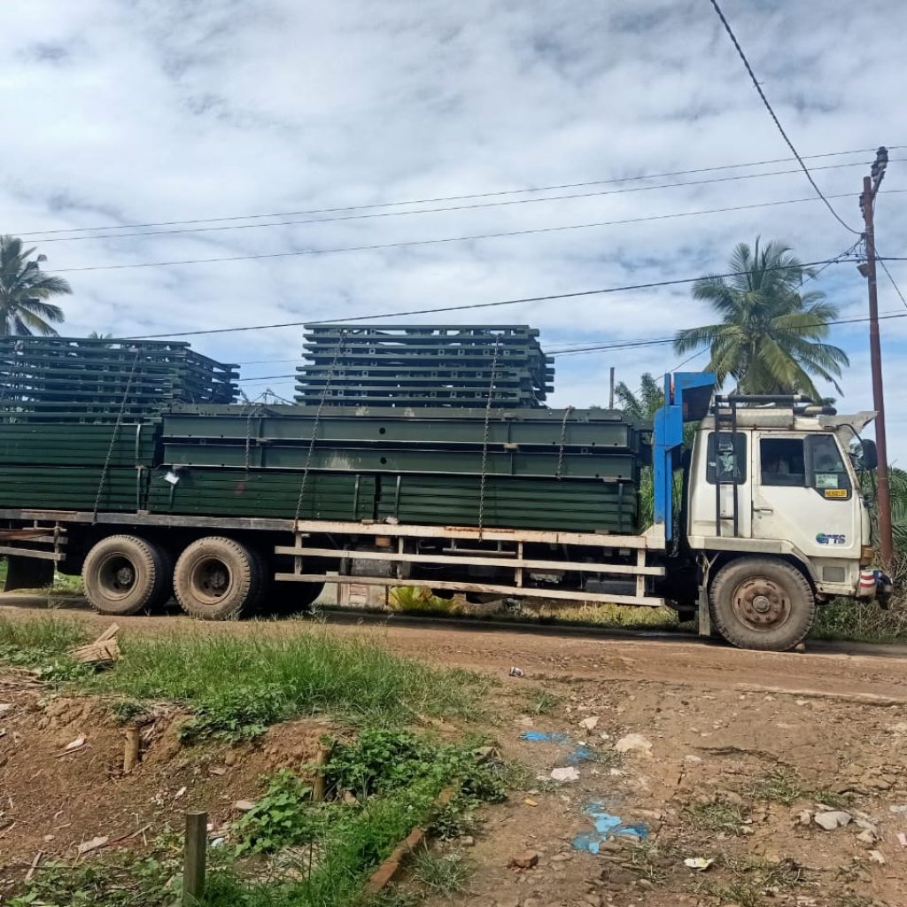 Pekerjaan pembangunan meliputi pengecoran pondasi beton, pembangunan penopang di kedua ujung jembatan, perakitan rangka jembatan modular, pemasangan plat lantai, penimbunan akses oprit, hingga tahap akhir berupa pengecatan. Seluruh tahapan tersebut telah diselesaikan dengan baik sehingga progres mencapai 100 persen.