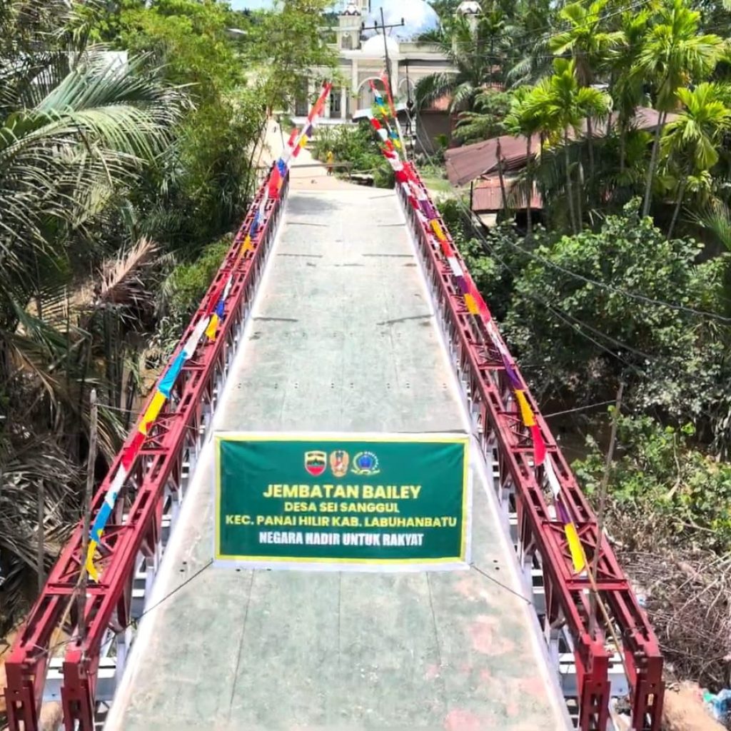 Labuhanbatu — Kodim 0209/LB menuntaskan pembangunan jembatan modular di Dusun 2, Desa Sei Sanggul, Kecamatan Panai Hilir, Kabupaten Labuhanbatu, Jum’at (20/3/2026). Jembatan sepanjang 30 meter ini dibangun guna memperlancar akses transportasi dan mendukung aktivitas masyarakat setempat.