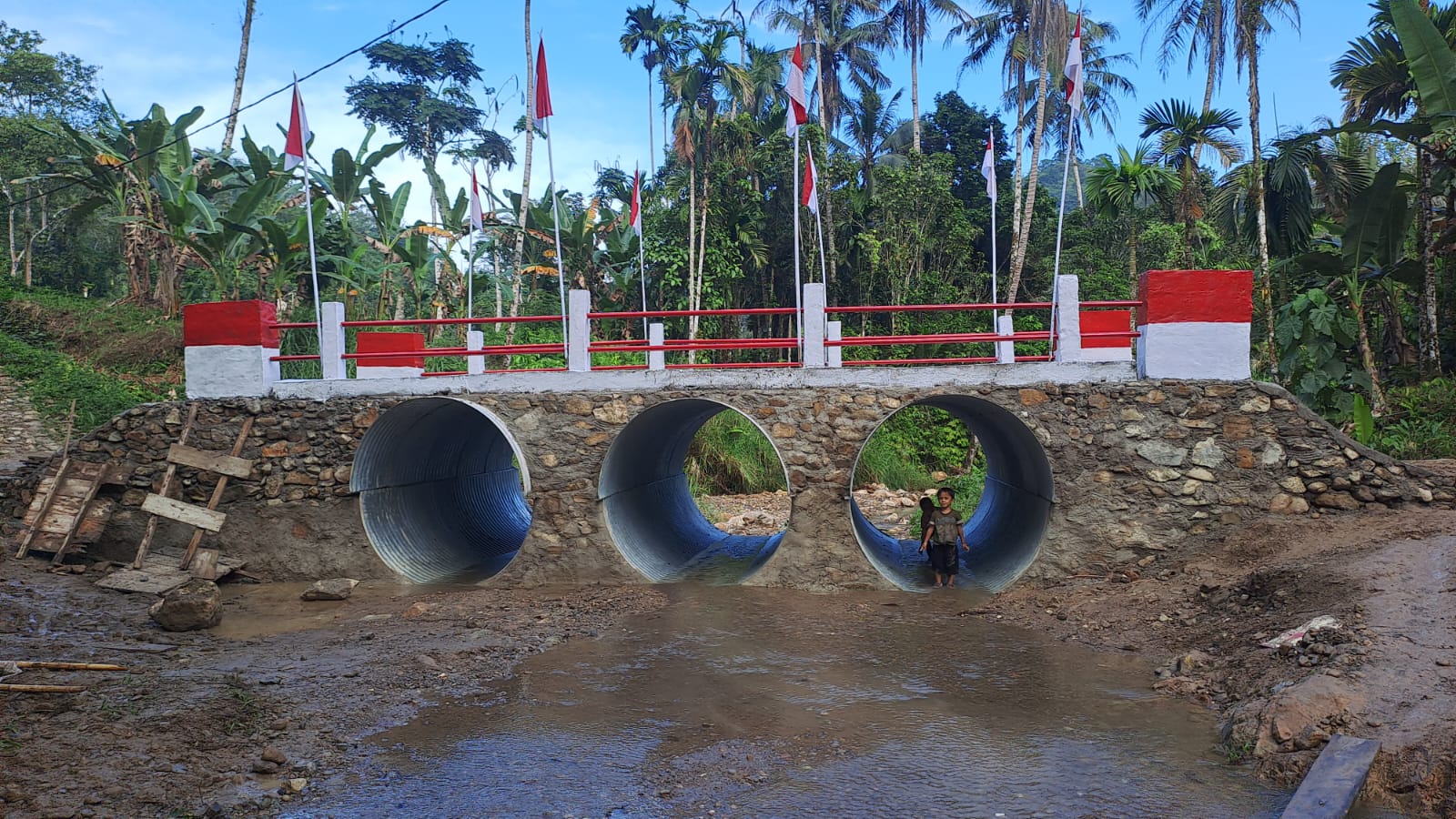 Dalam pelaksanaannya, pembangunan jembatan ini menggunakan berbagai peralatan seperti excavator, cangkul, sekop, linggis, angkong serta peralatan tukang manual lainnya sehingga seluruh tahapan pekerjaan dapat diselesaikan dengan baik dan tepat waktu.