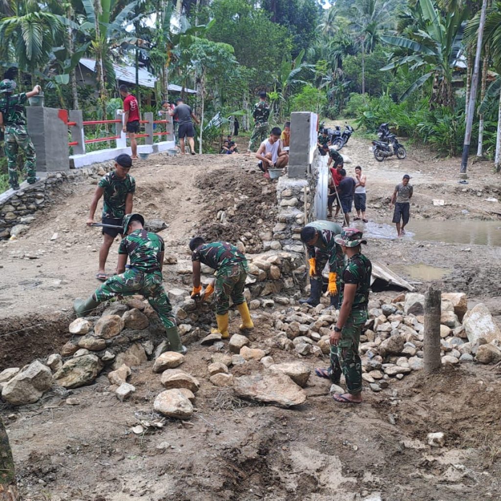 Kodim 0213/Nias dan Yon TP 903/Baluseda Tuntaskan Pembangunan Jembatan Aramco di Sihareo III
