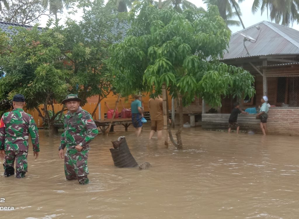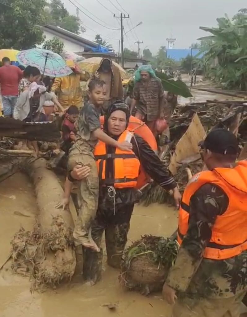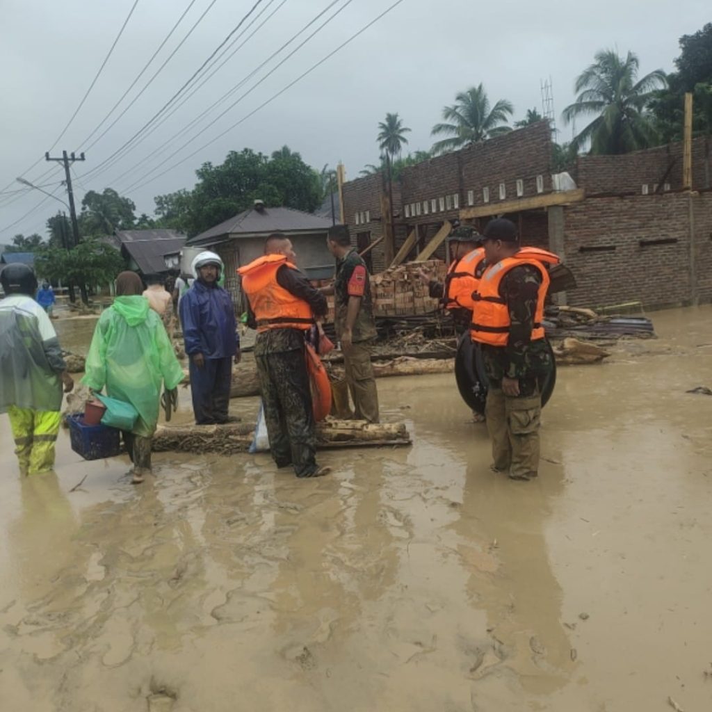 Koramil 01/BT Bantu Evakuasi Warga Terdampak Banjir di Batangtoru, Tapanuli Selatan