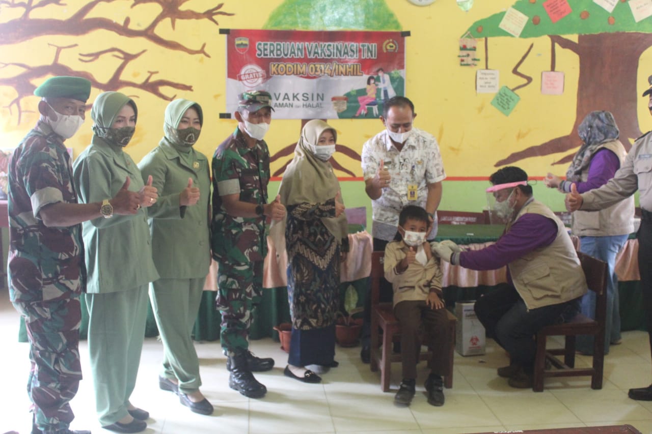 Sebelum melaksanakan kegiatan silaturahmi, Dandim beserta Ketua Persit KCK Cab. LIV (lima Puluh empat) terlebih dahulu meninjau pelaksanaan Vaksinasi anak usia 6 sampai 11 tahun yang di laksanakan oleh Polkes 01.10.11. Kodim 0314/lnhil dan Puskesmas Sungai Salak di SDN 001/Sungai Salak Kecamatan Tempuling.