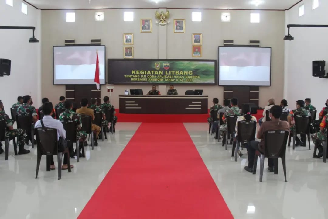 Simalungun–Kodim 0207/Simalungun melaksanakan kegiatan Litbang tentang Uji Coba Aplikasi Hallo Babinsa Berbasis Android Tahap Il TA 2022 di Aula Pemungkas Kodim 0207/Simalungun Jl. Jhon Horailam Saragih Kecamatan Pamatang Raya Kabupaten Simalungun (26/4/22).