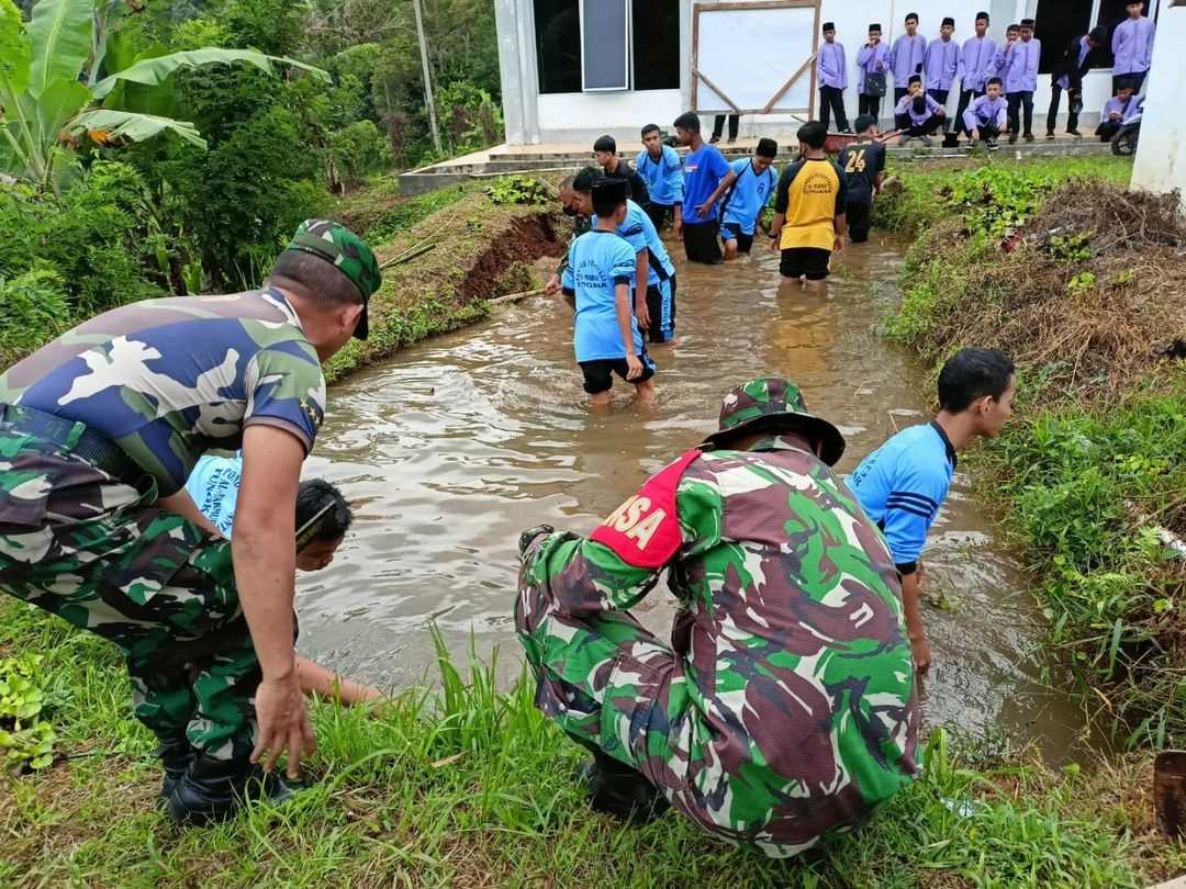 “Kita ajak warga dalam hal ini para santri untuk memanfaatkan lahan kosong menjadi lahan aktif seperti pembuatan kolam ikam air tawar, “ucap Sertu Ahmad Darwis.
