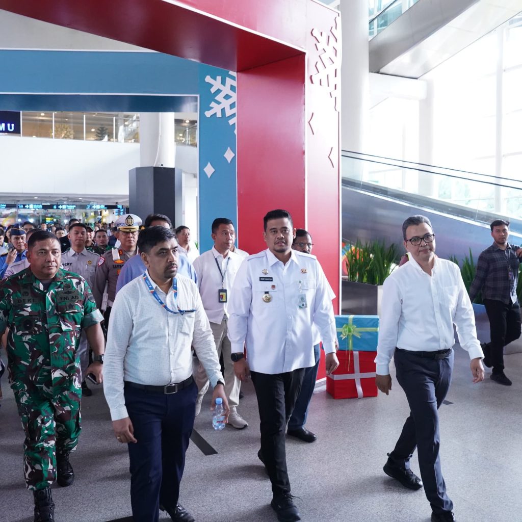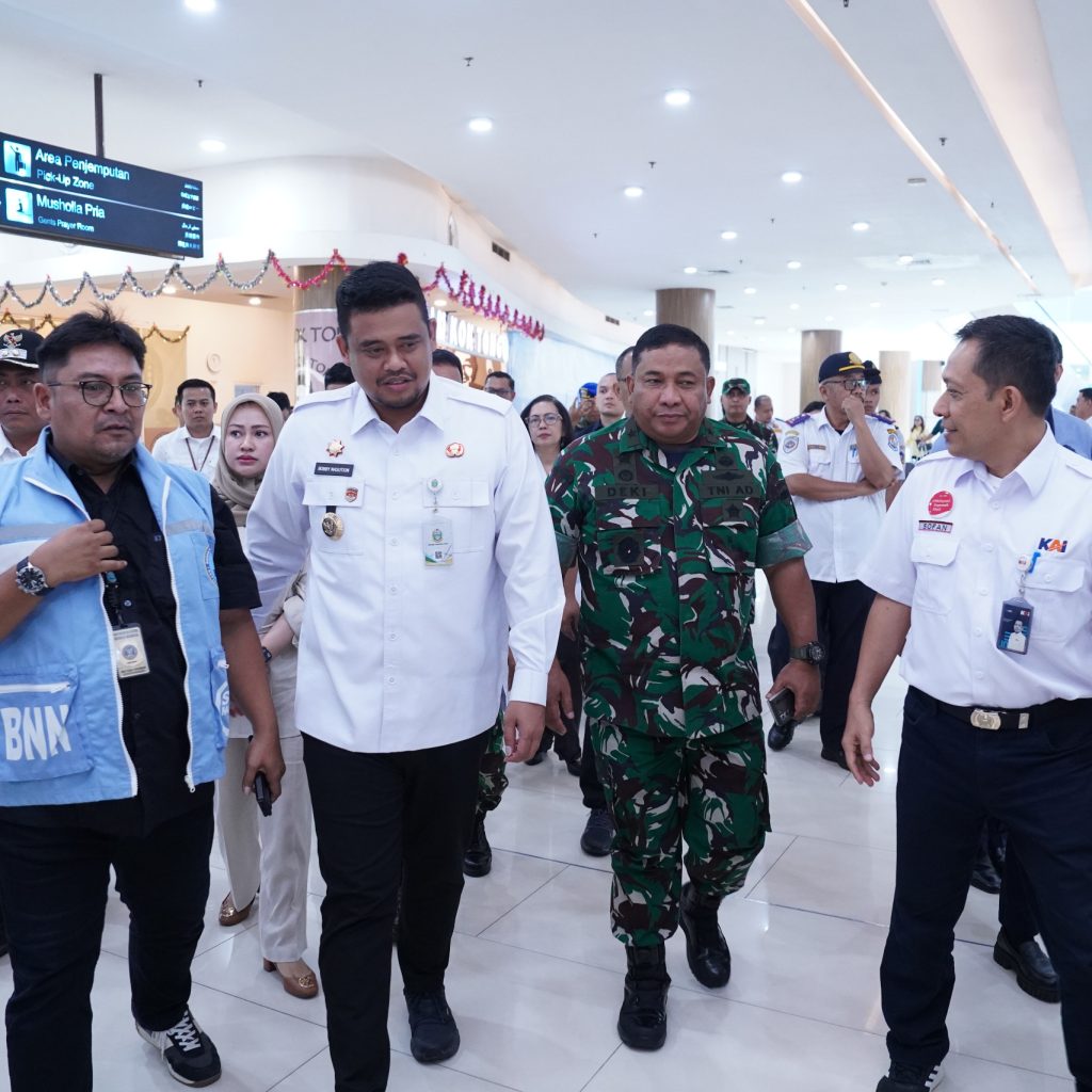 Medan – Pangdam I/Bukit Barisan Mayjen TNI Hendy Antariksa bersama Forum Koordinasi Pimpinan Daerah (Forkopimda) Sumatera Utara meninjau langsung arus mudik Natal dan Tahun Baru (Nataru) 2025 di Bandara Internasional Kualanamu dan Stasiun Kereta Api Medan, Rabu (24/12/2025). Peninjauan ini dilakukan untuk memastikan kesiapan sarana prasarana, pelayanan, serta sistem pengamanan berjalan optimal.