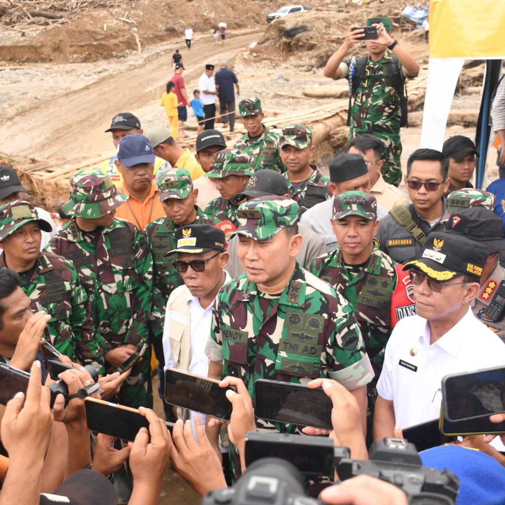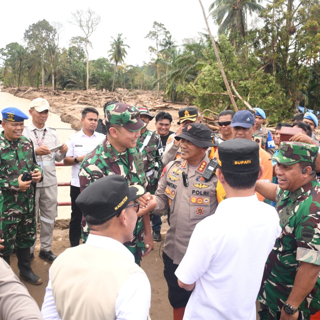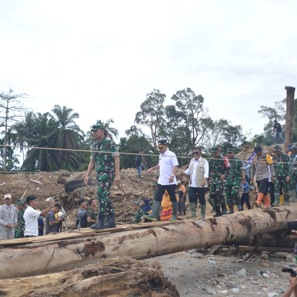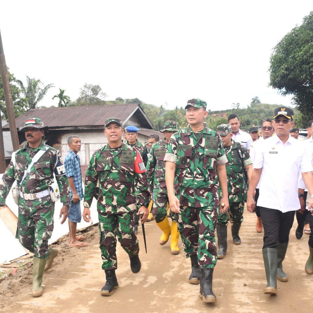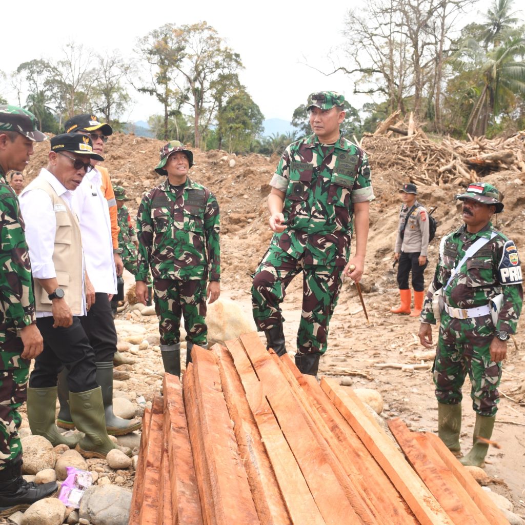 Tapanuli Selatan – Pangdam I/BB Mayjen TNI Hendi Antariksa meninjau lokasi bencana alam dan akses jalan terputus di Desa Anggoli, Kecamatan Sibabangun, Kabupaten Tapanuli Selatan, Rabu (17/12/2025).