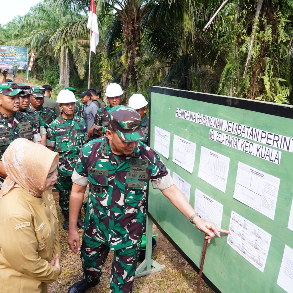 Langkat – Pangdam I/Bukit Barisan Mayjen TNI Hendy Antariksa menghadiri kegiatan ground breaking pembangunan jembatan perintis di Desa Bela Rakyat, Kecamatan Kuala, Kabupaten Langkat, Senin (6/4/2026). Kegiatan ini merupakan bagian dari upaya membantu pemerintah daerah dalam meningkatkan aksesibilitas serta kesejahteraan masyarakat.